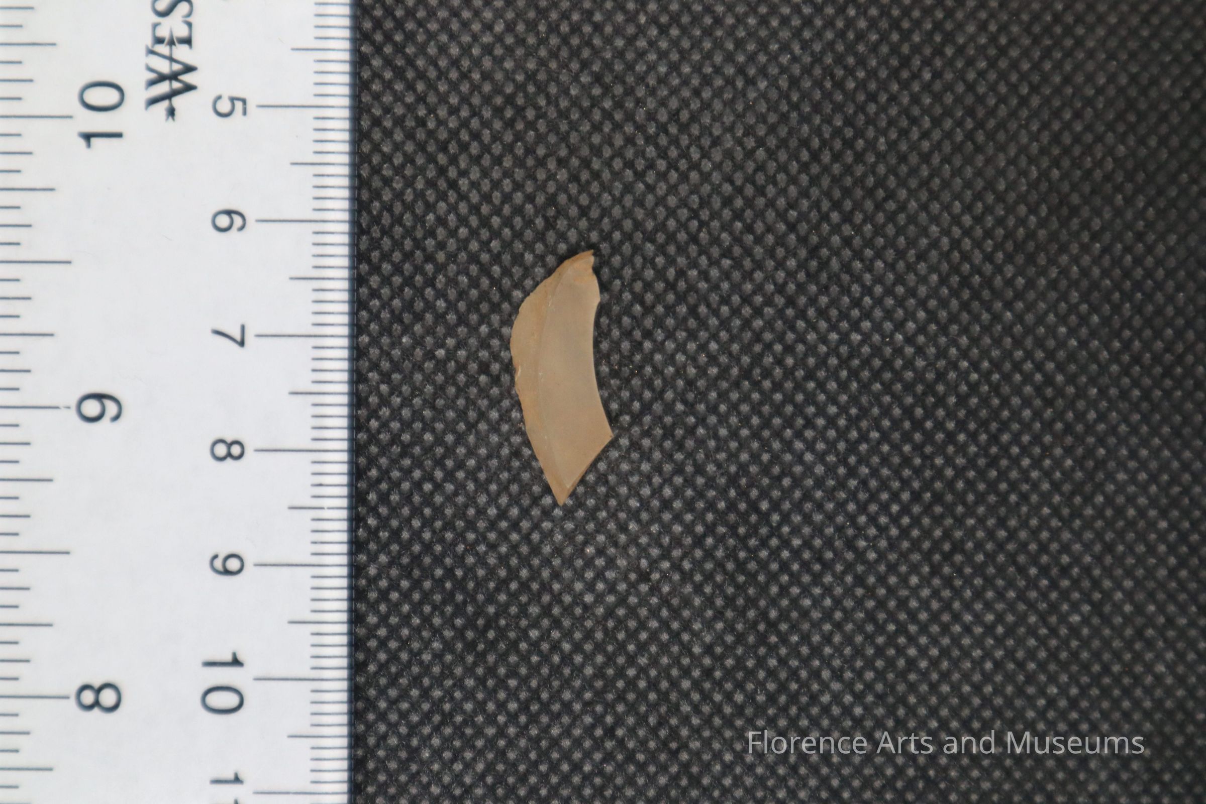 A small, frosted container glass fragment.