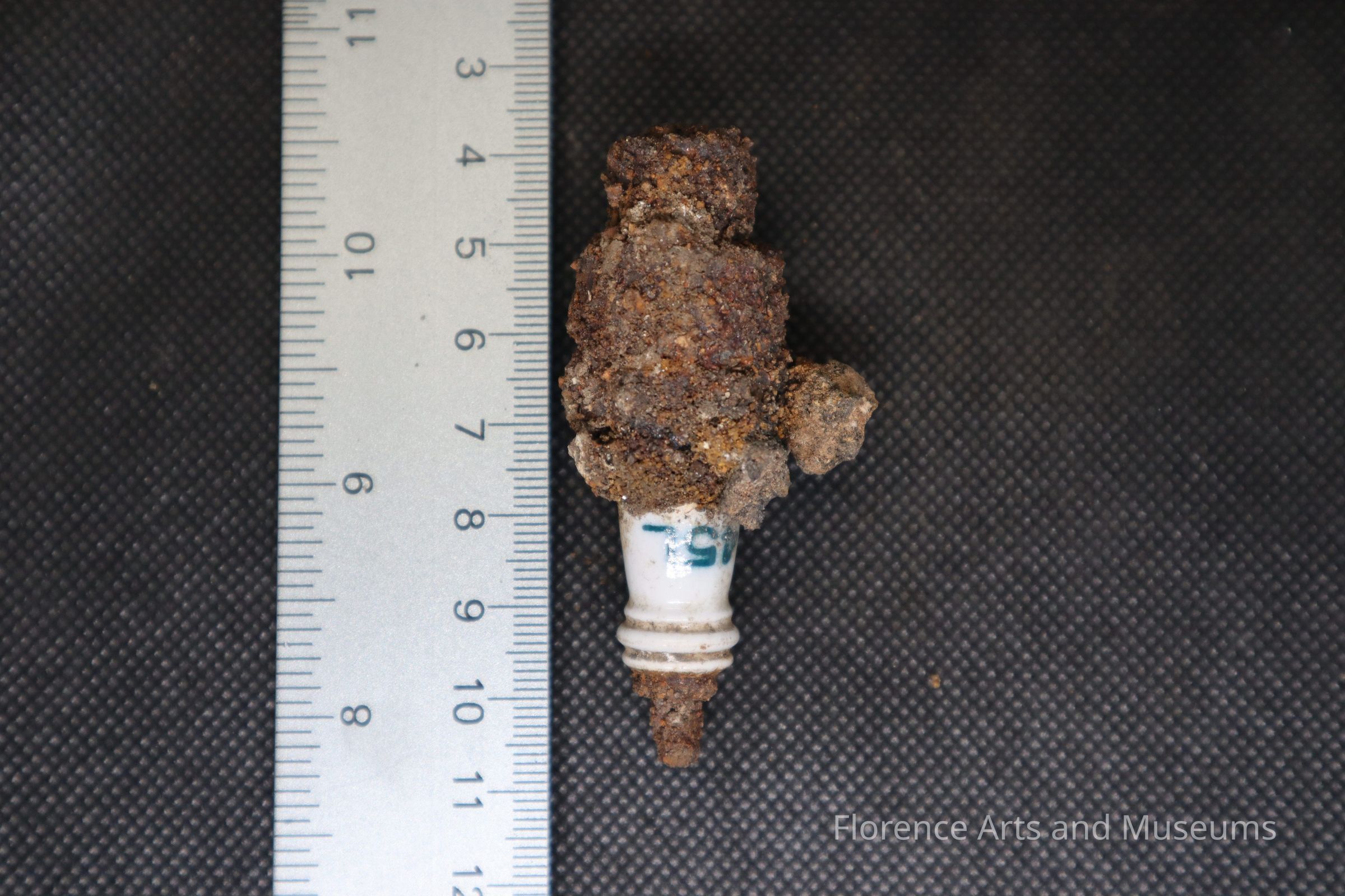 This sparkplug was excavated from the cistern on February 25th, 2024, at Pope's Tavern.