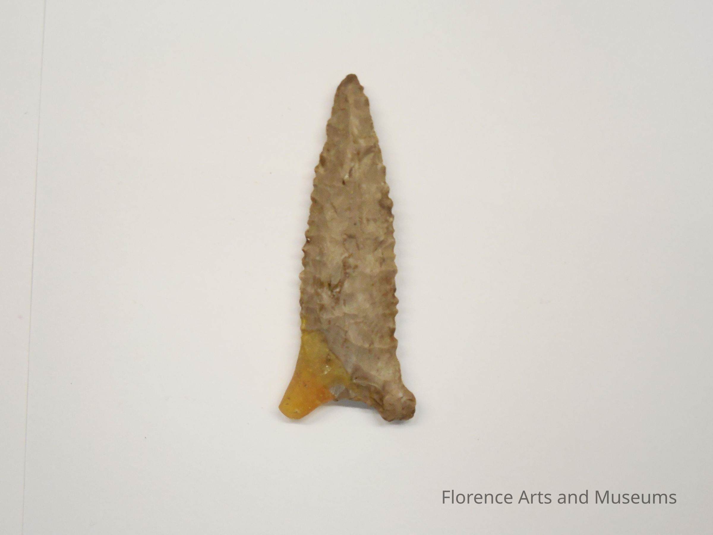 The Dalton Greenbrier point type is typically a medium to large point with broad side notches and a concave base. Many examples are finely serrated. It is named for the Greenbrier area of Kentucky Lake in Tennessee. This point has been partially reconstructed.Context
