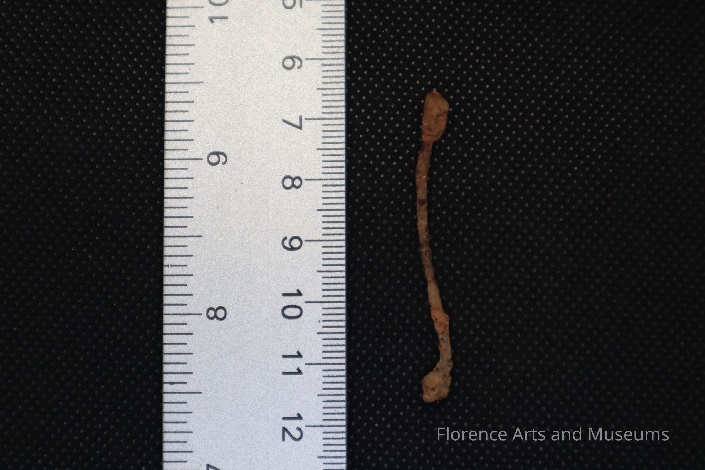 This wire nail was excavated at Test Unit 4, Level 1 on October 1st, 2023, at Pope's Tavern.
