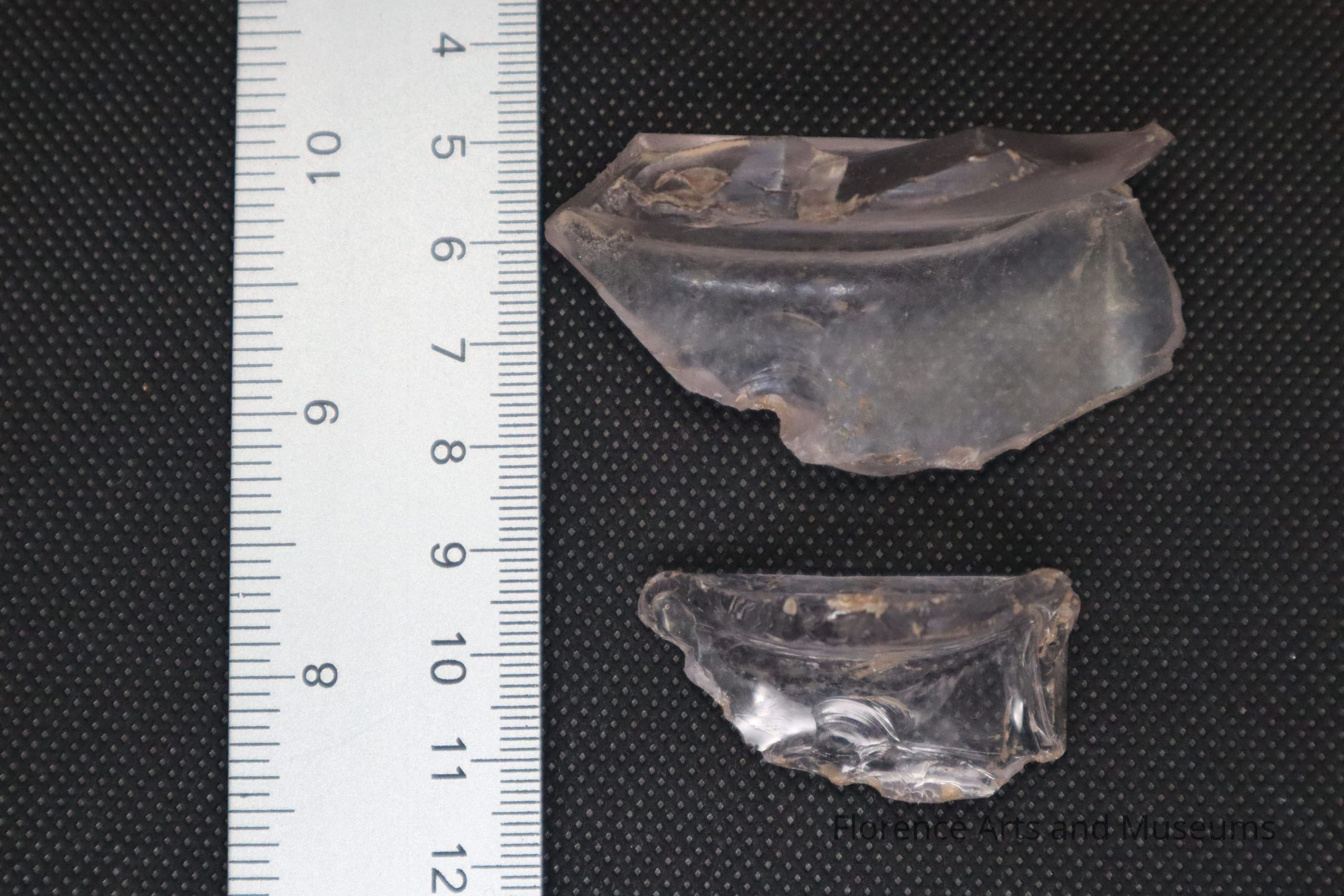 Two opalescent container glass fragments.