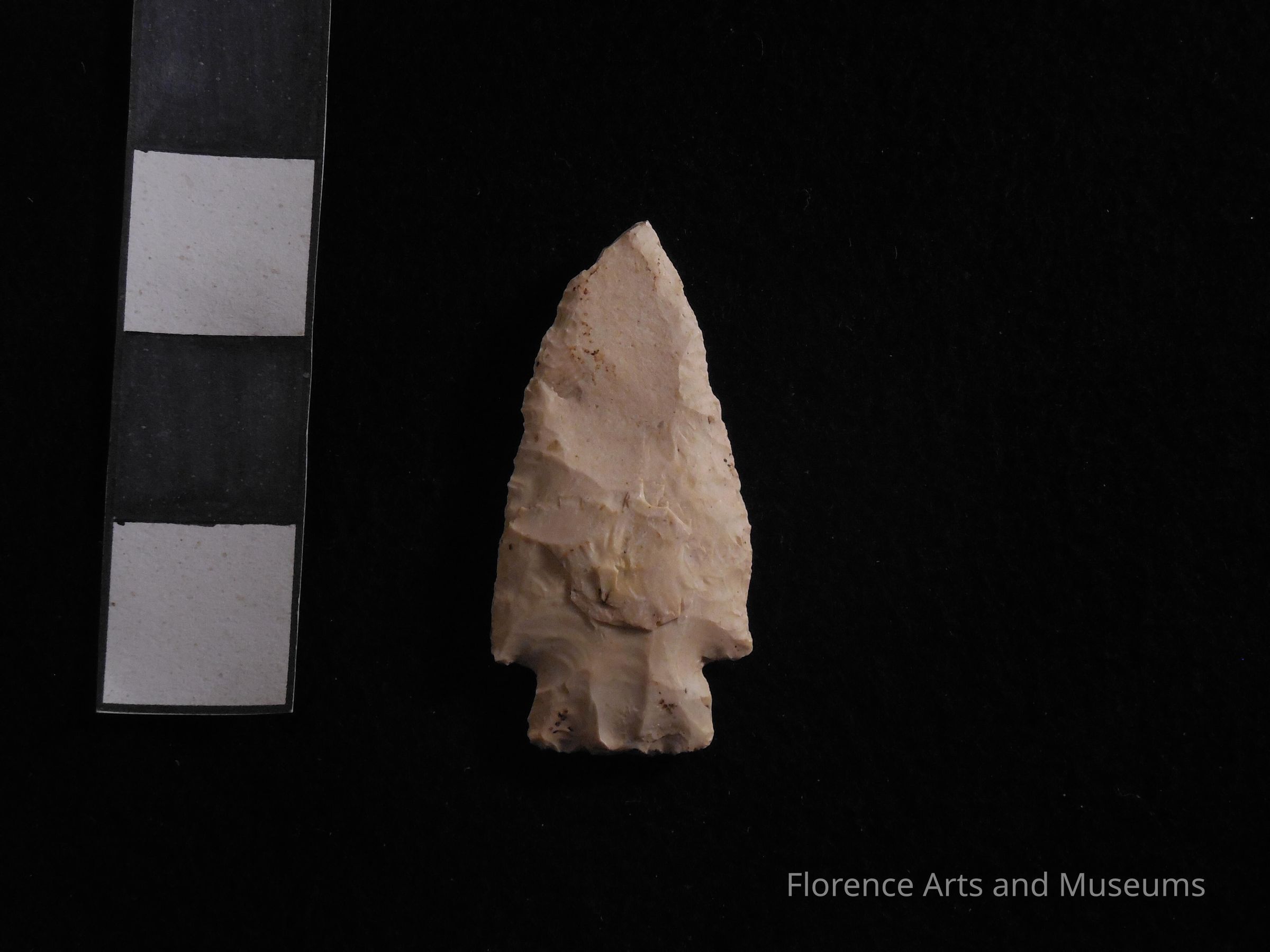The Benton point is a medium to large size point with a straight to excurvate blade. It is typically made with fine, parallel flaking. This point type has a steeply beveled base. It is named for a site in Benton County, TN.Context