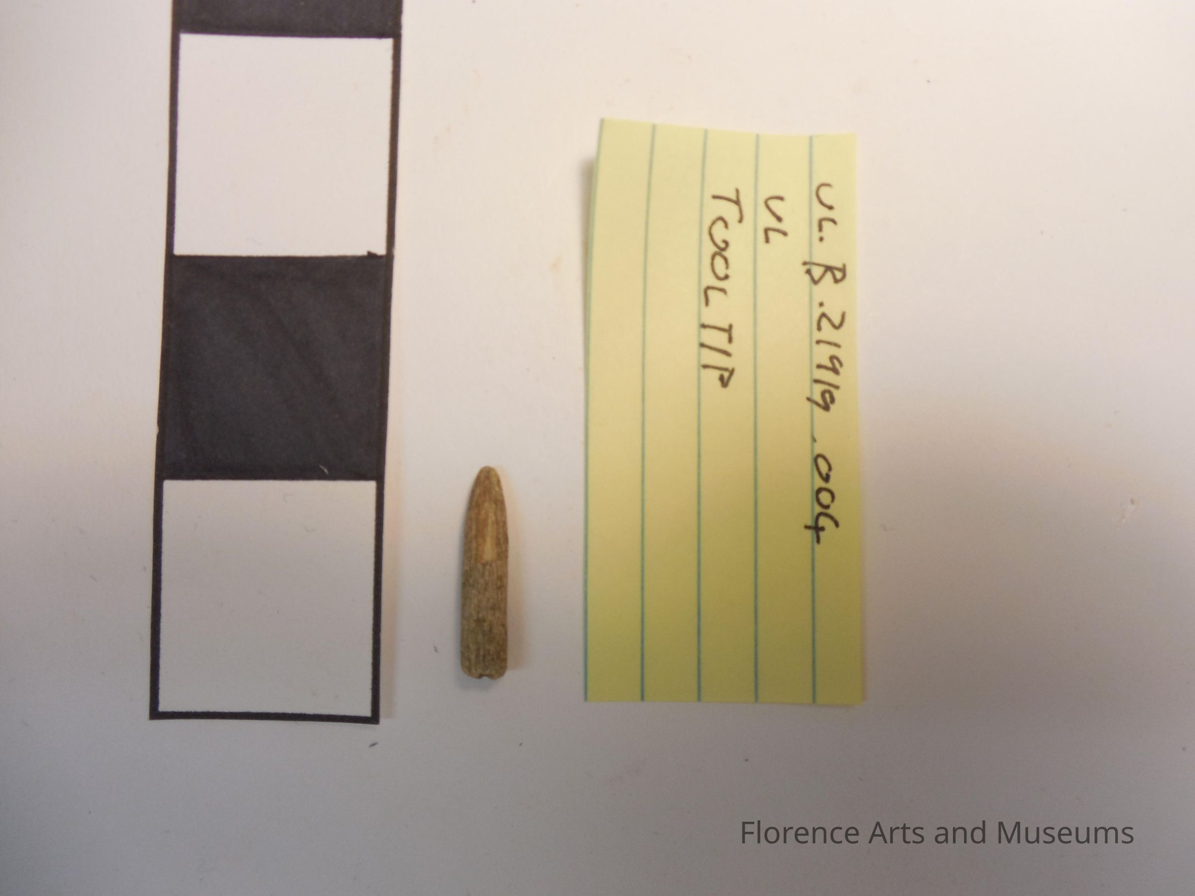 Made from the leg bone of a turkey, bone projectile points are hollow at one end to fit over the wooden shaft of a spear or dart.
