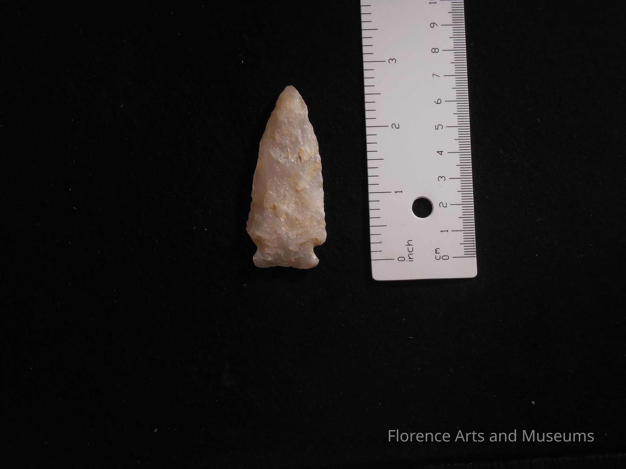 The Greenbrier point type is typically a medium to large point with shallow side notches and a straight to concave base. Many examples are finely serrated. It was fairly common point type, found throughout the southeast. It is named for the Greenbrier area of Kentucky Lake in Tennessee.Context