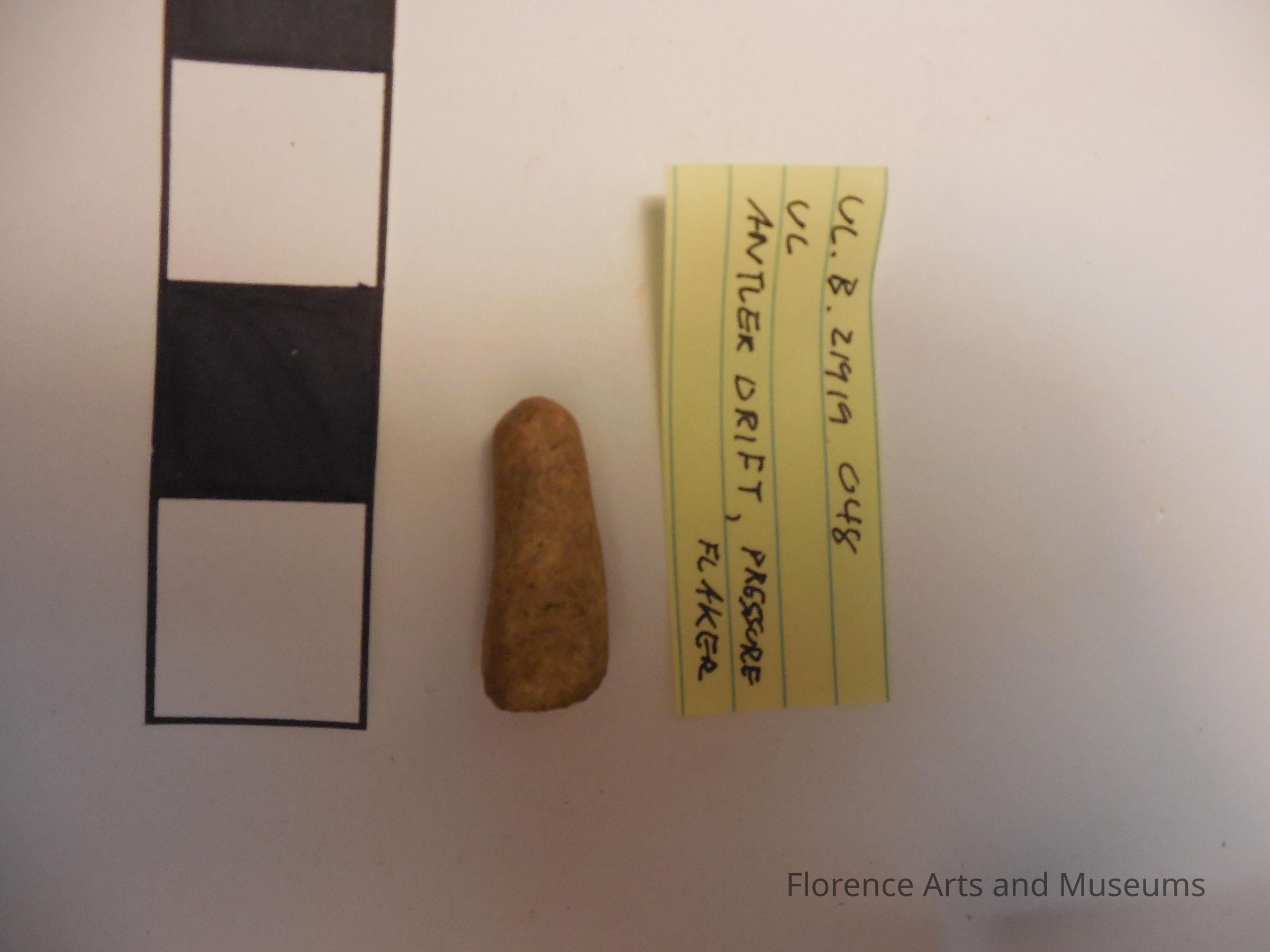 This piece of deer antler was worked into a tool that could help shape stone.