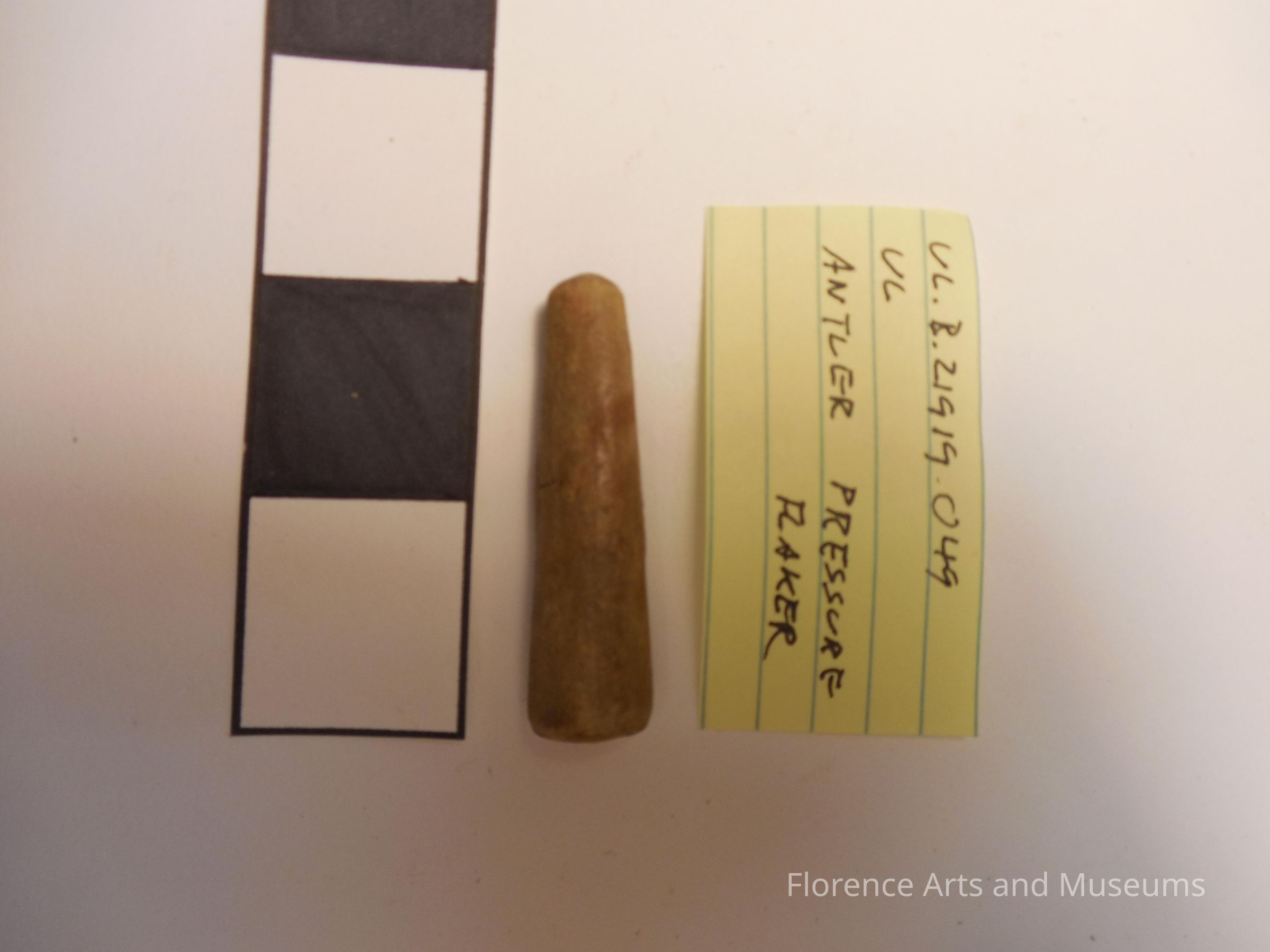 This piece of deer antler was worked into a tool that could help shape stone.