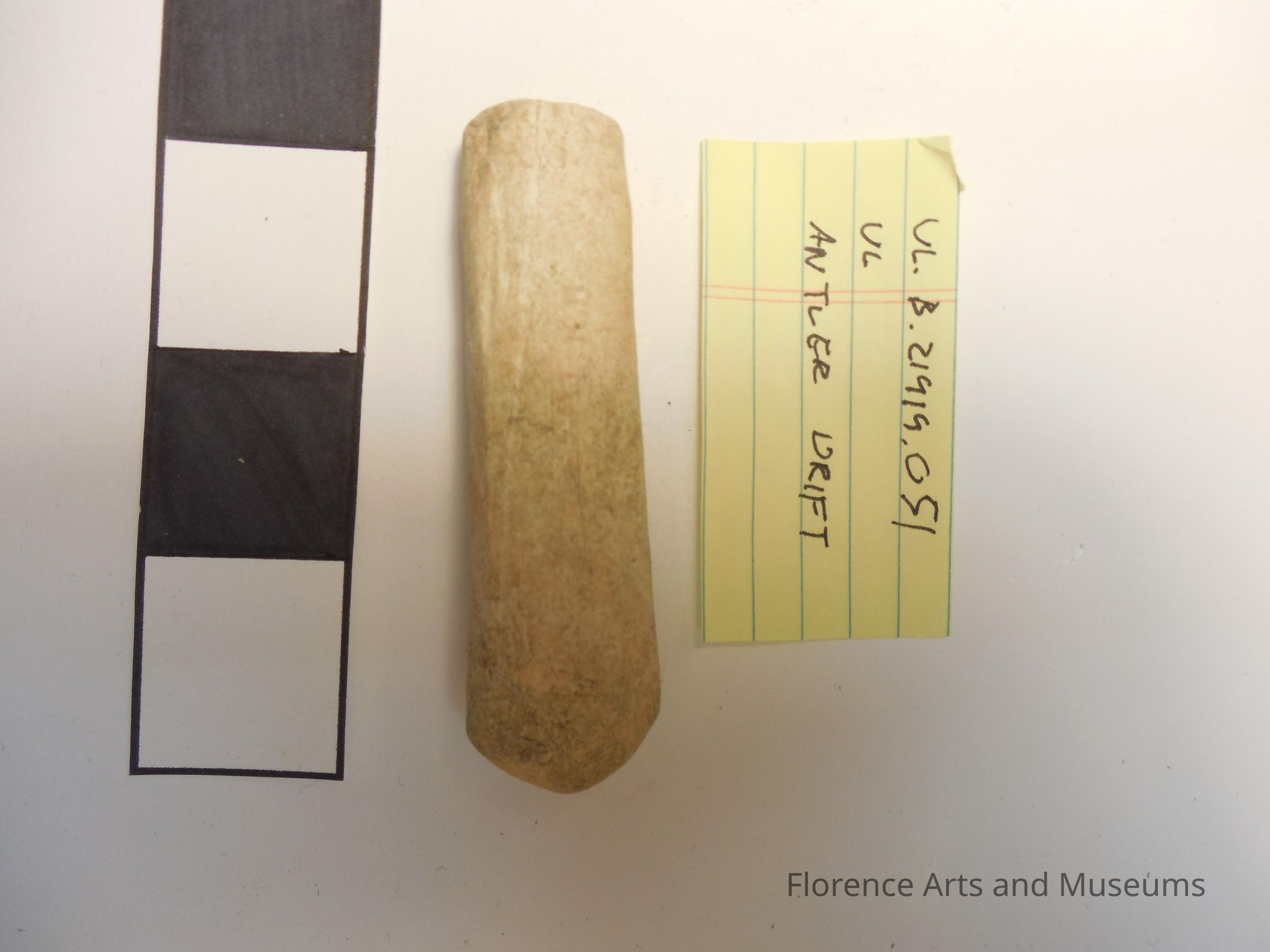 This piece of deer antler was worked into a tool that could help shape stone.