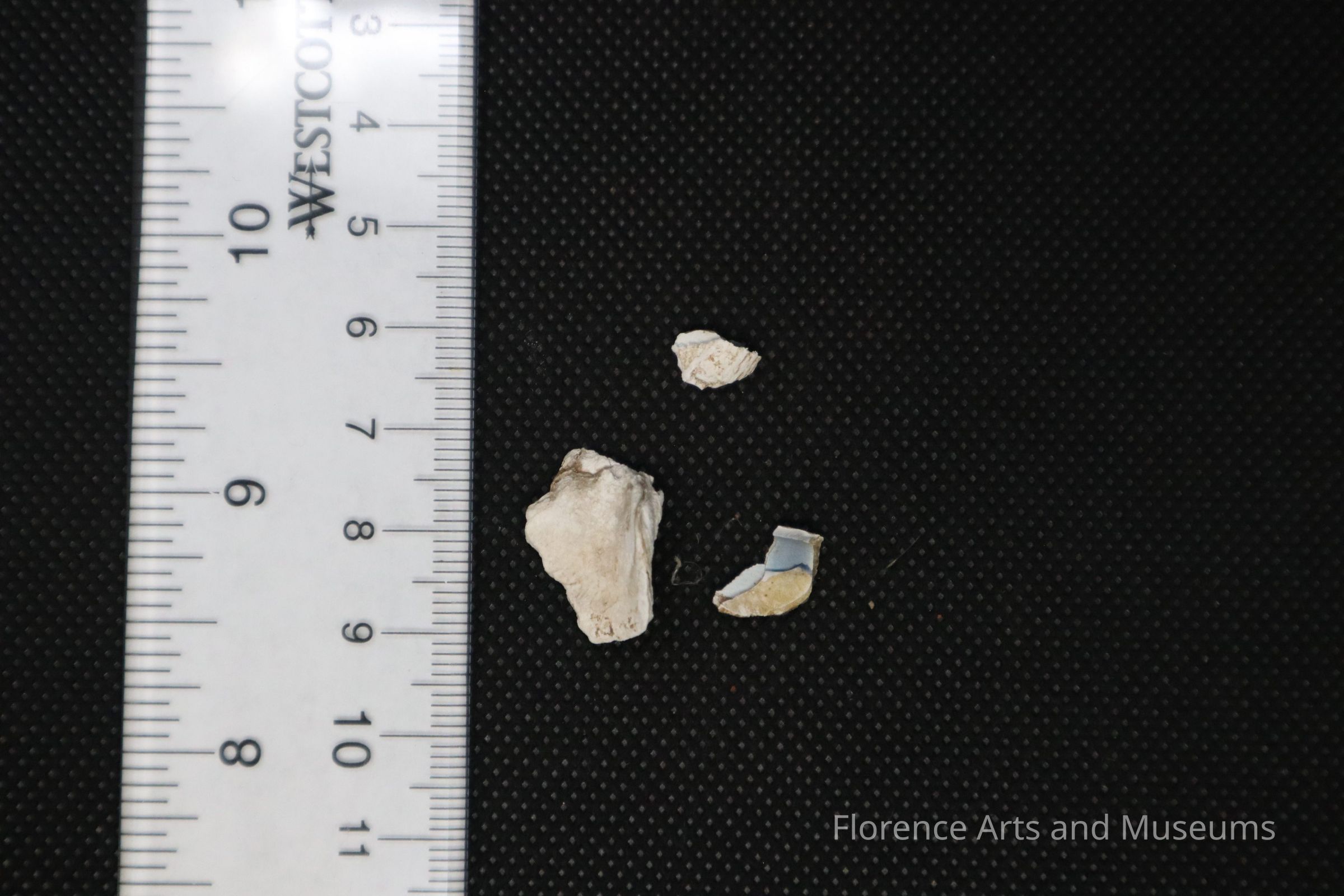 These fragments were excavated from Level 3 of Test Unit 4 on August 28th, 2024, at Pope's Tavern.Materials