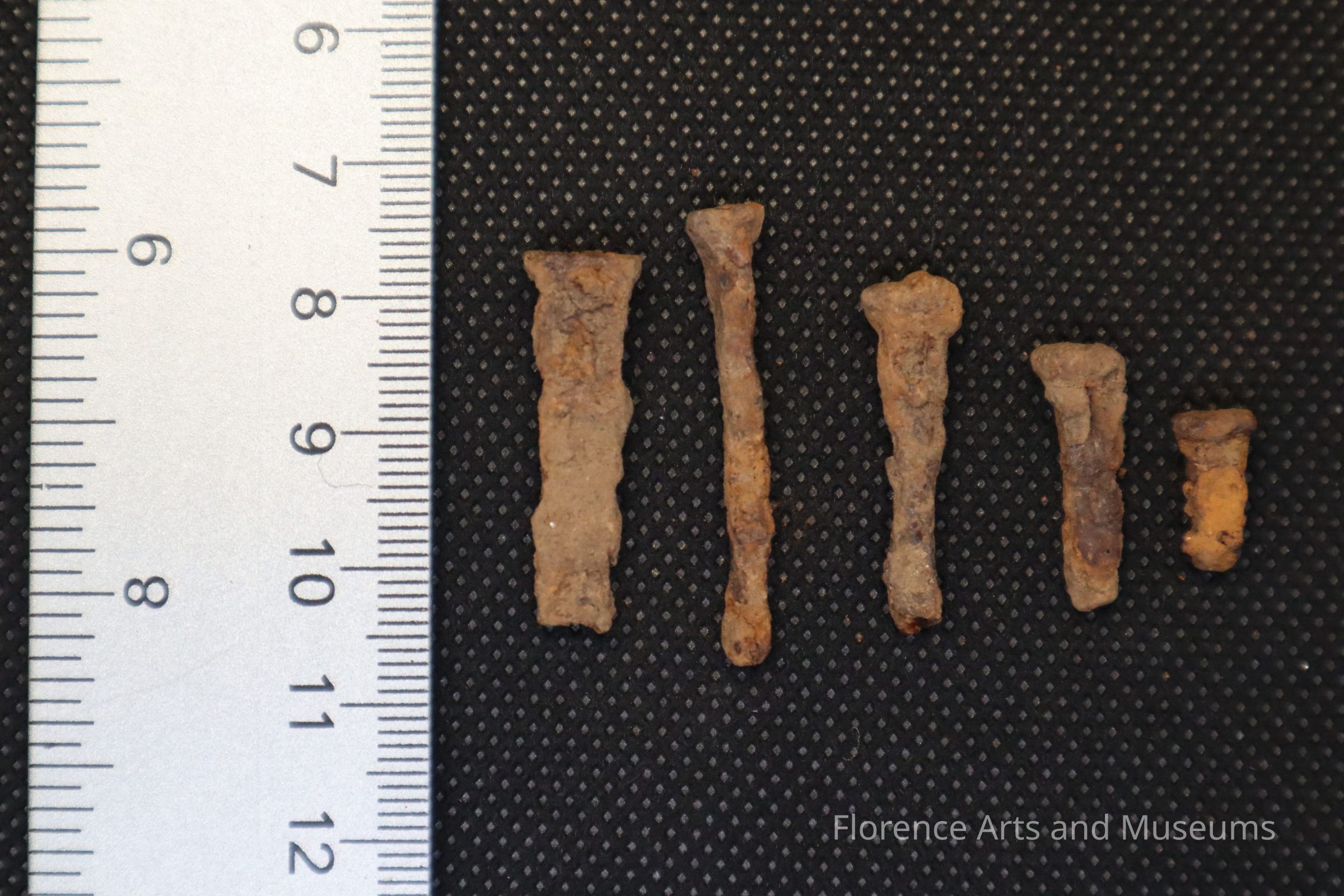 These nail fragments were excavated at Test Unit 4, Level 1 on September 16th, 2023, at Pope's Tavern.