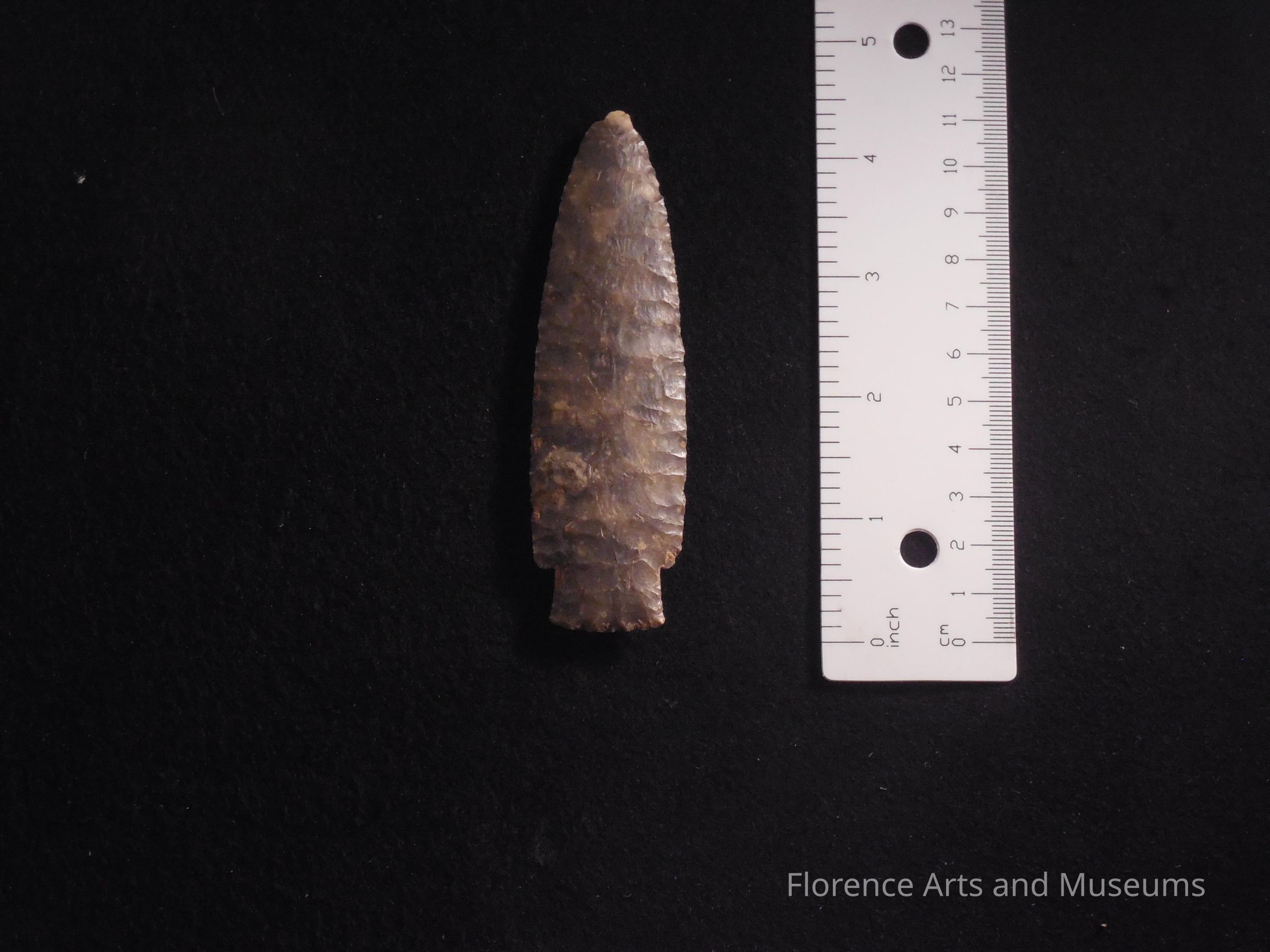 The Elk River point type is medium to large-sized with diagonal/horizontal flaking on both sides. The hafting area is generally straight, and the blade is excurvate. The point is named for a site on the Elk River in Limestone County, AL.Context
