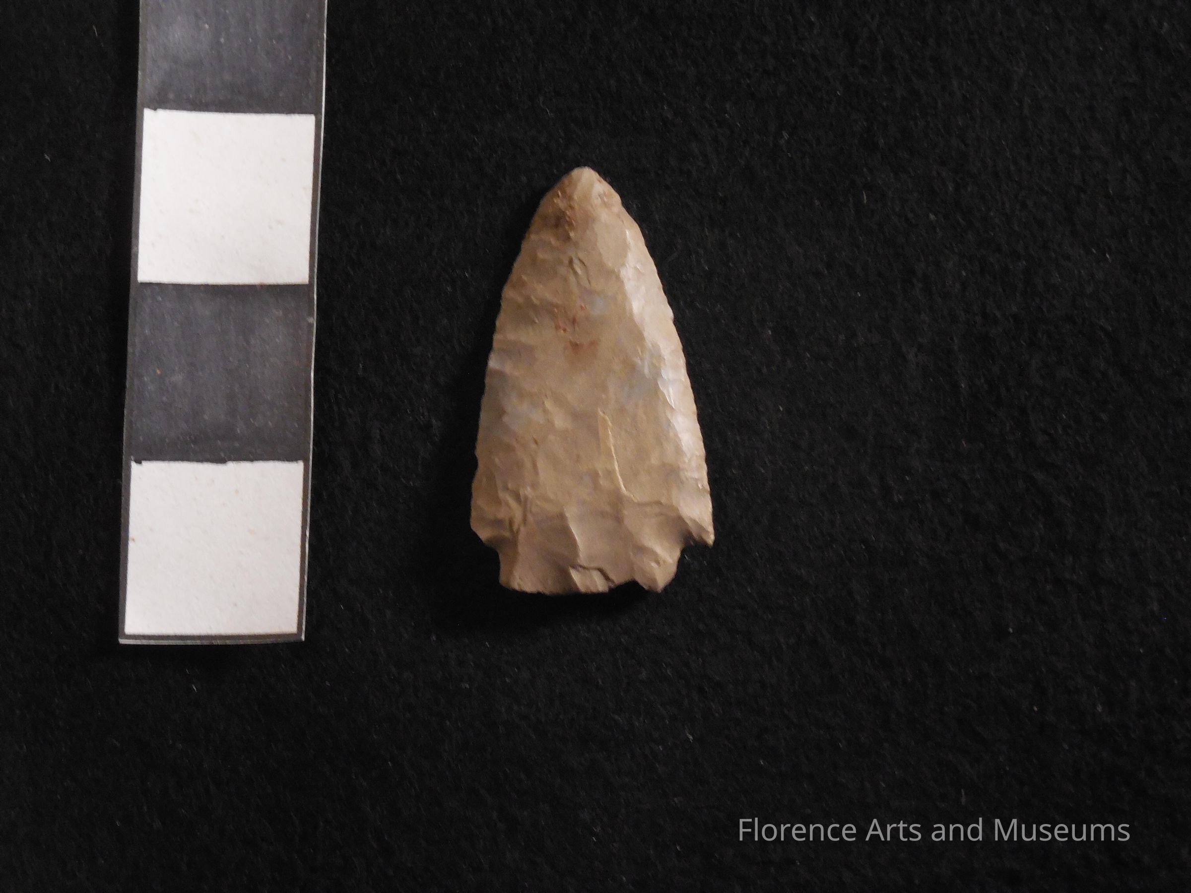 The White Springs point is medium-sized and triangular in shape. The blade is often excurvate with shallow notches removed from the corners. An identifying feature is a short, broad stem. It is named for the White Springs area of Limestone County, AL.Context