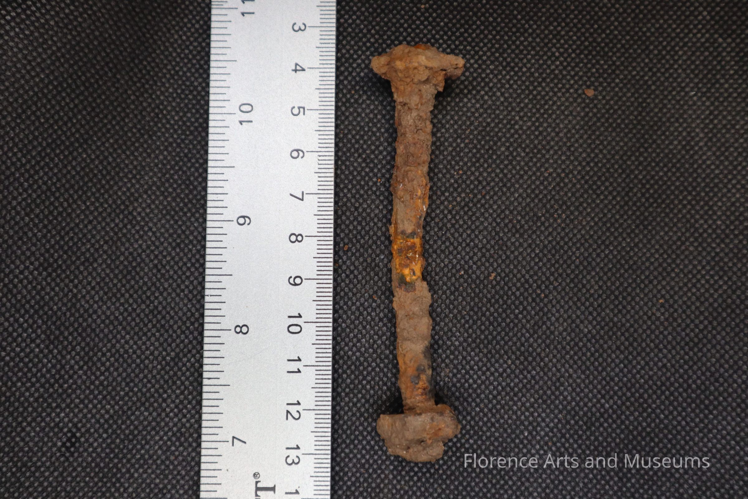 This artifact was excavated at the cistern on October 22nd, 2023, at Pope's Tavern.