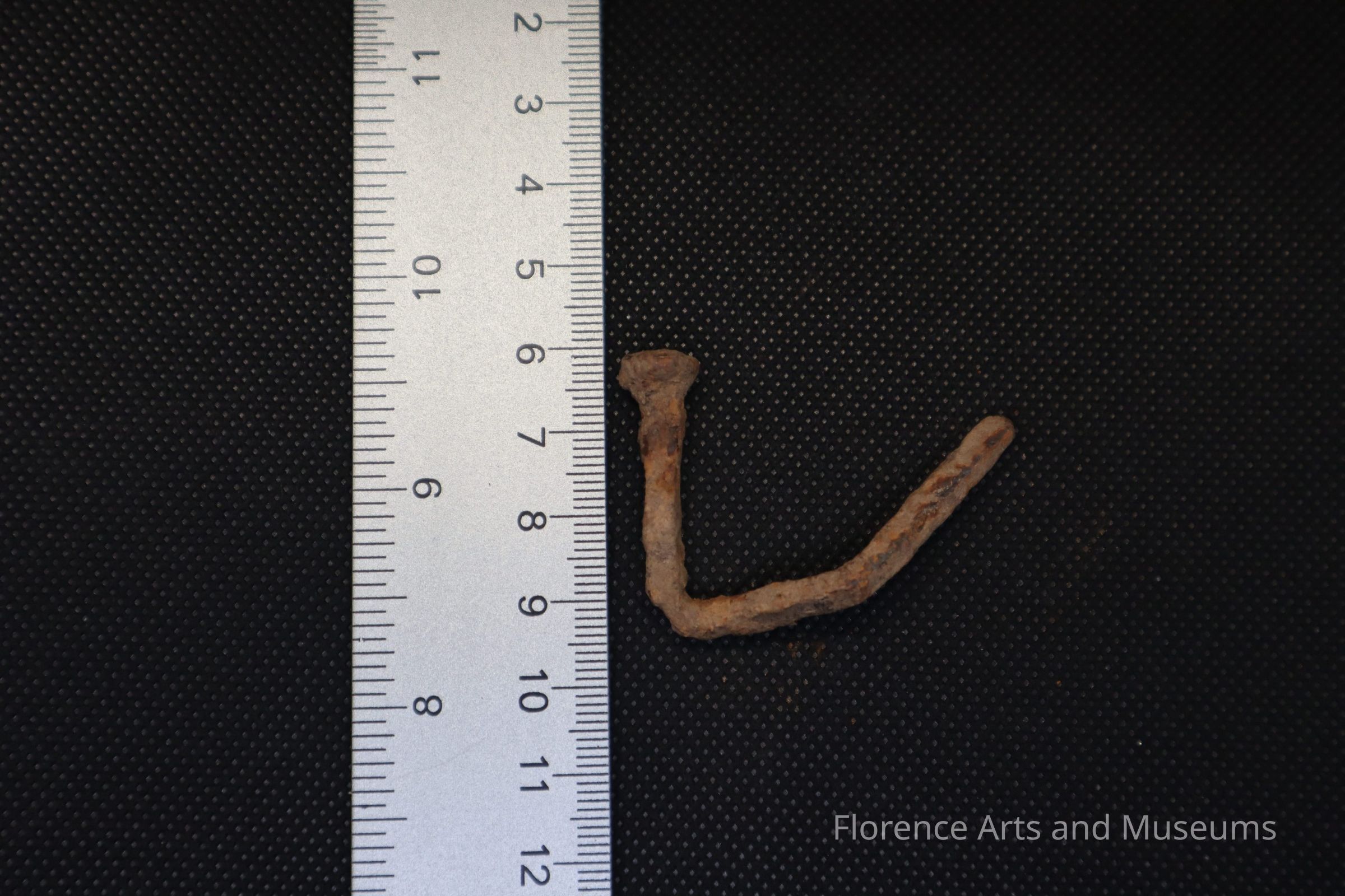 This nail was excavated at Level 1, Test Unit 4 on September 12th, 2023, at Pope's Tavern.