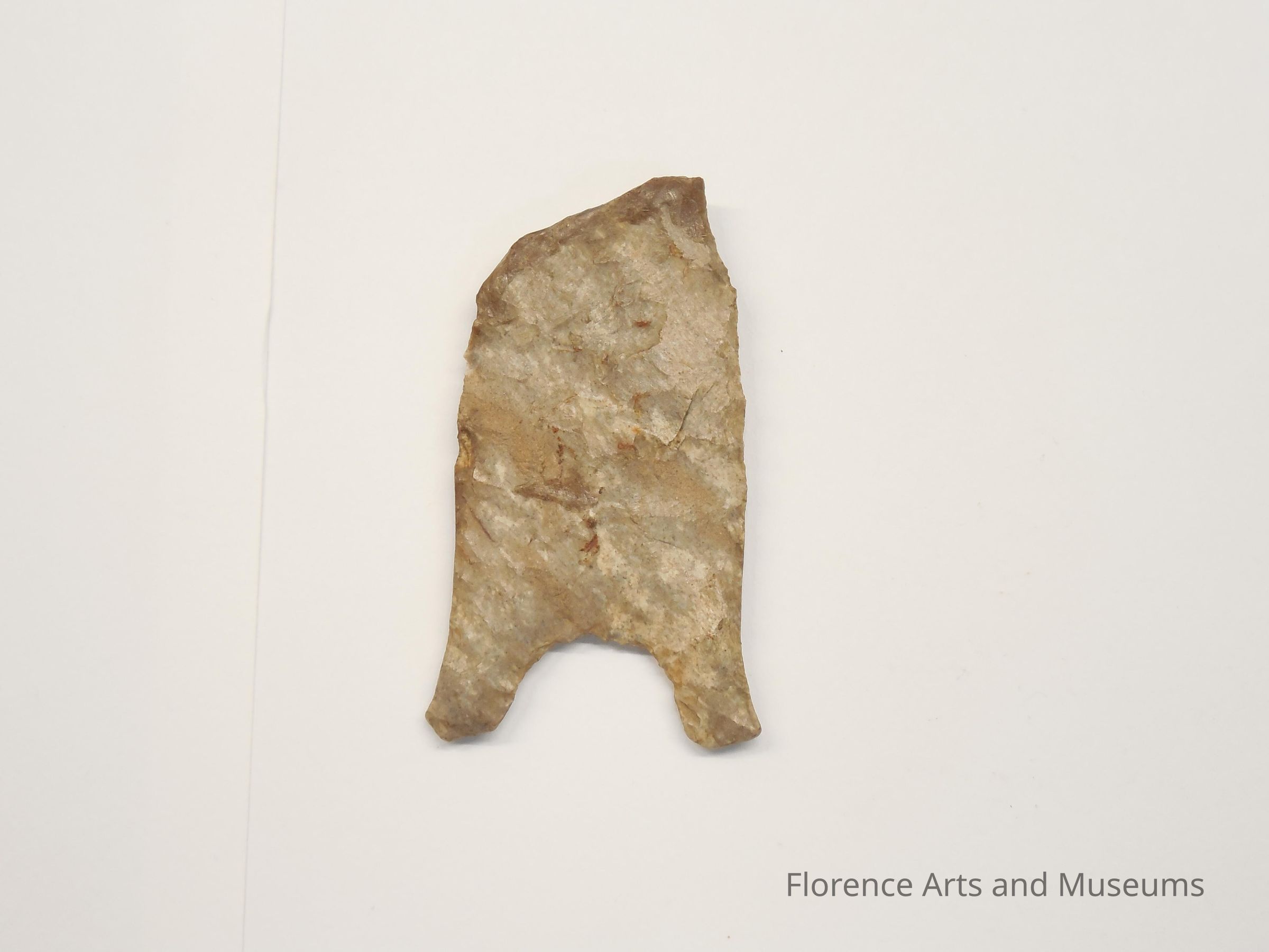 The Quad point is typically recurvate (curved inward) because of a constricted hafting area. Typically, the auricles (ears) are the widest part of the point and face downward. The Quad point is named for the Quad site in Limestone County, AL. The tip has broken off in this example.Context