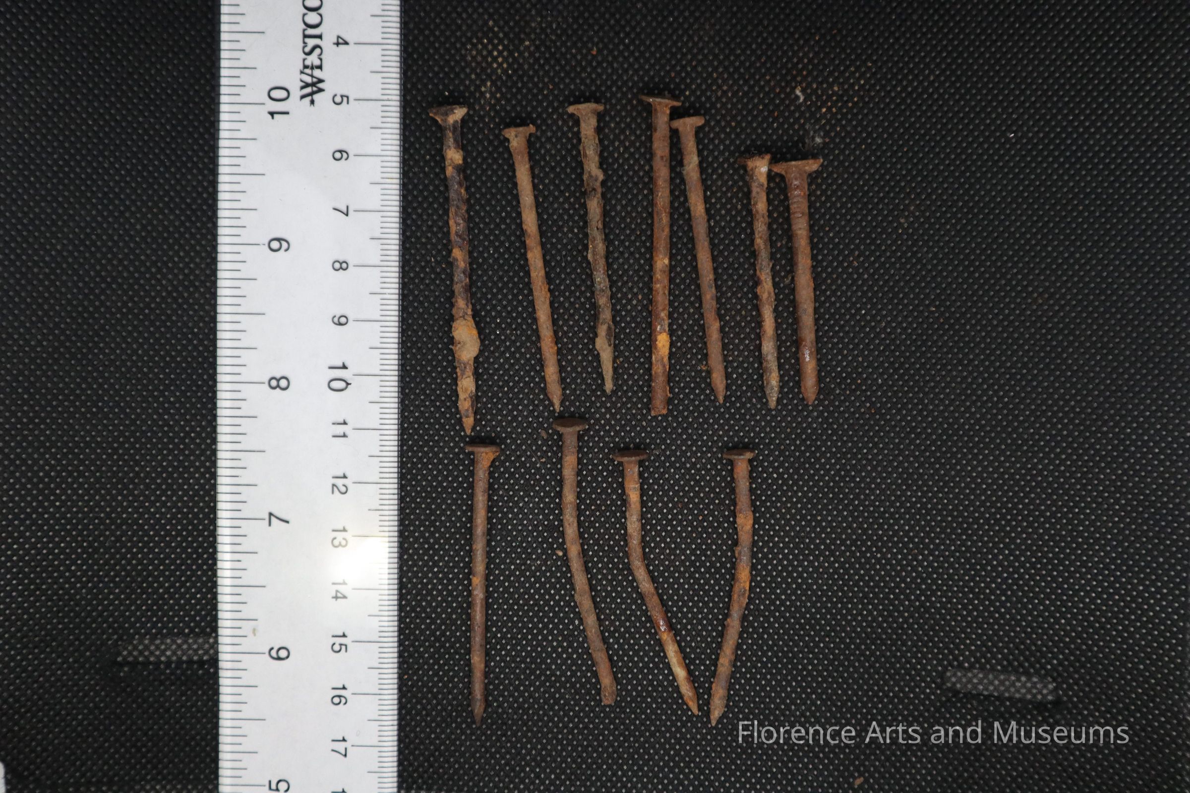These eleven modern cut nails were a random surface level find found at Pope's Tavern on October 4th, 2024.