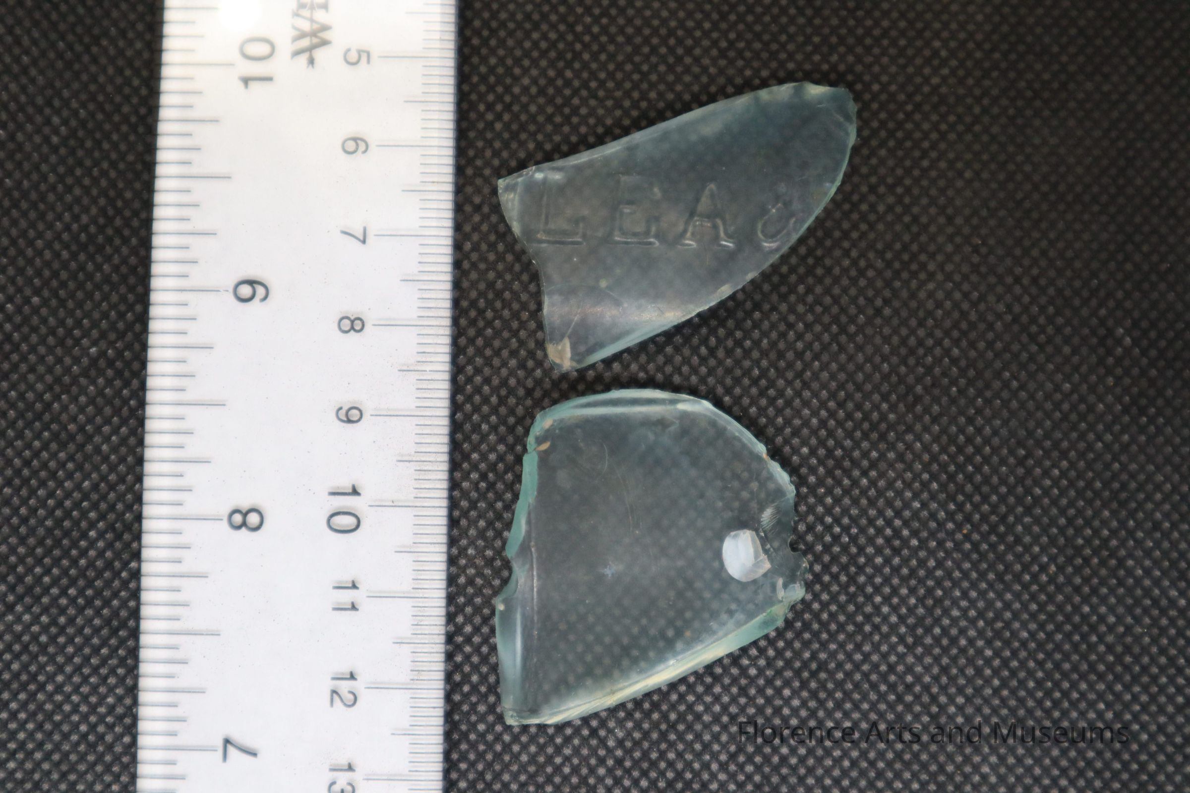 Two container glass fragments, with one of them showing a clear "LEA &".Context