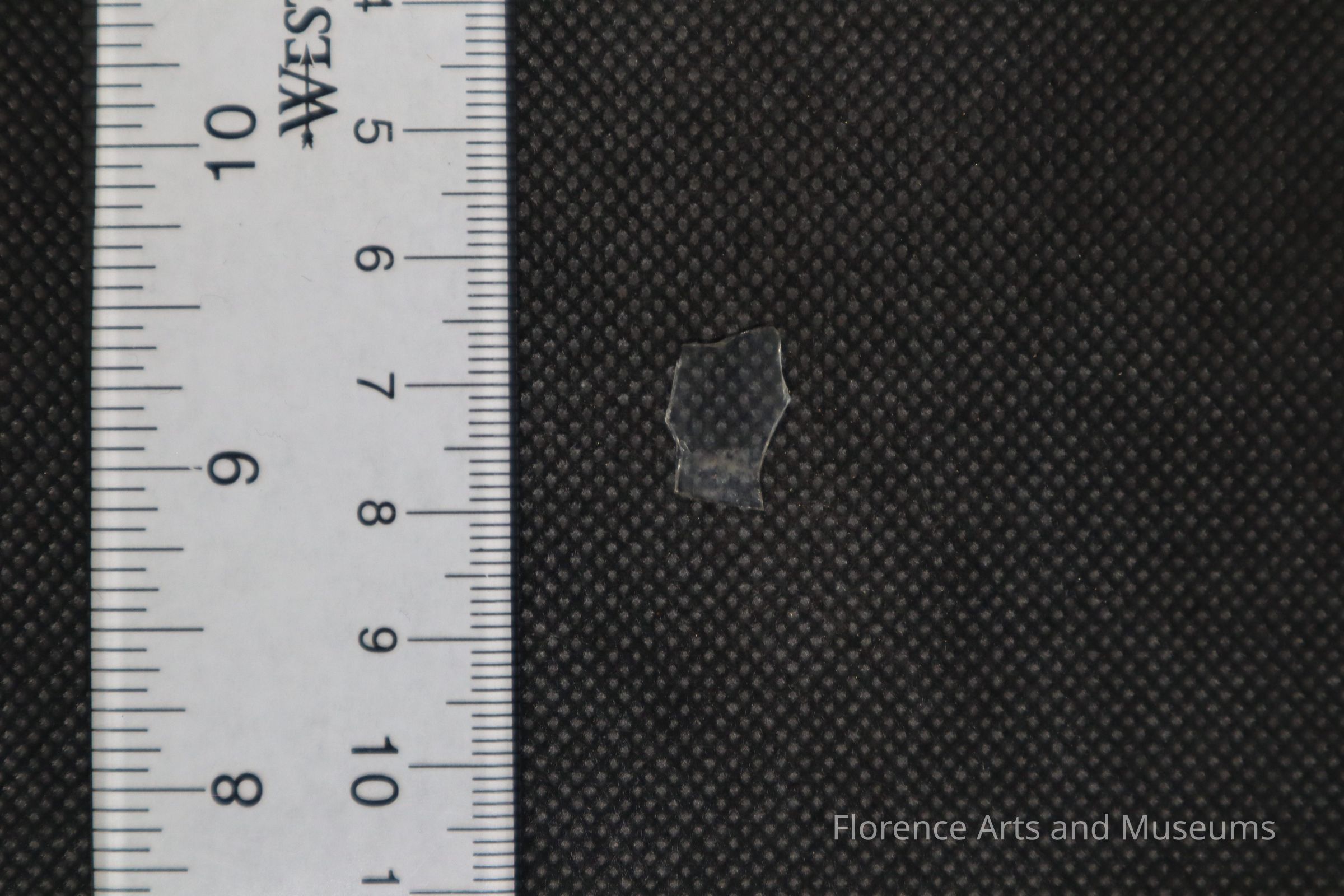 A tiny, clear container glass fragment.