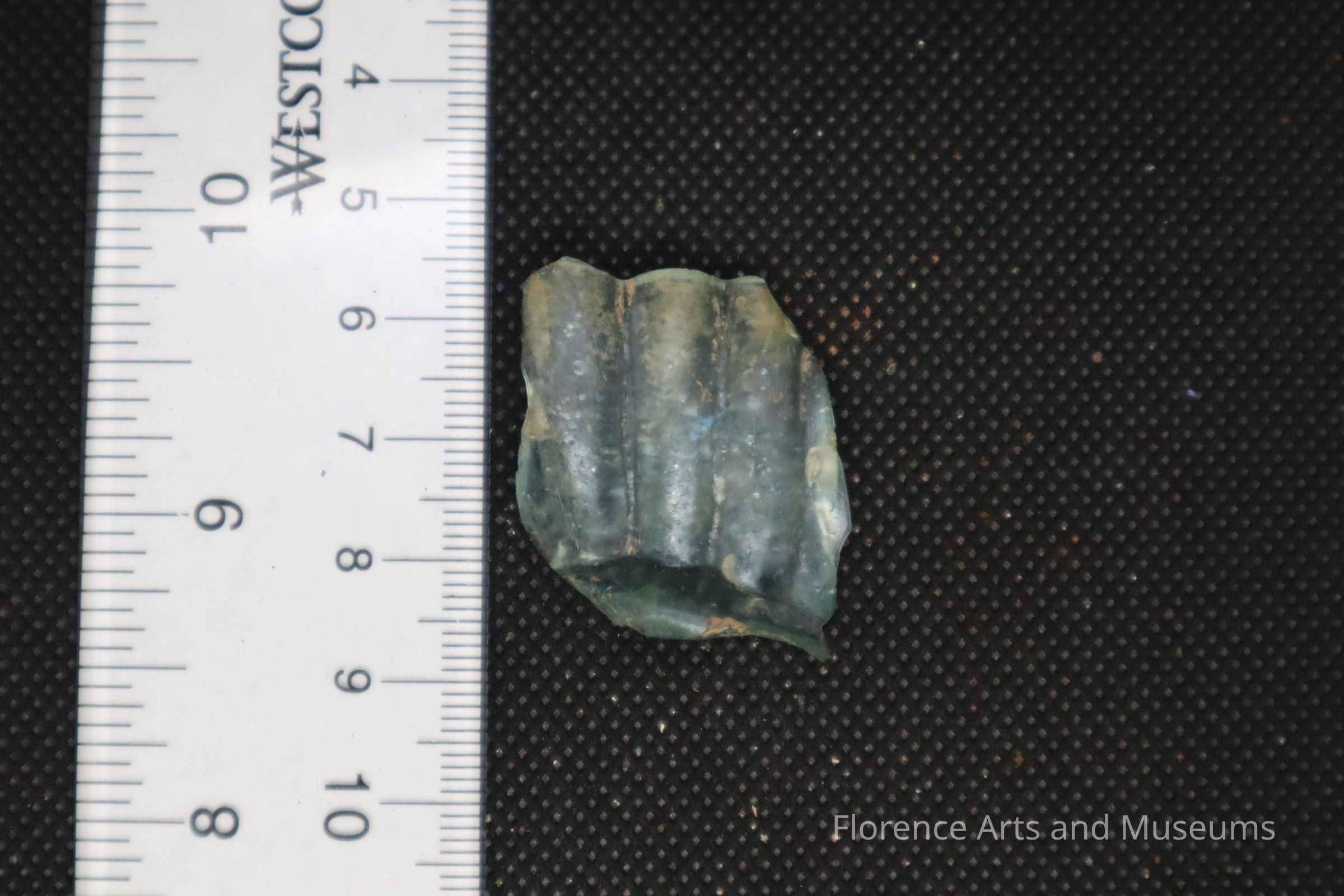 Ridged aqua container glass fragment.
