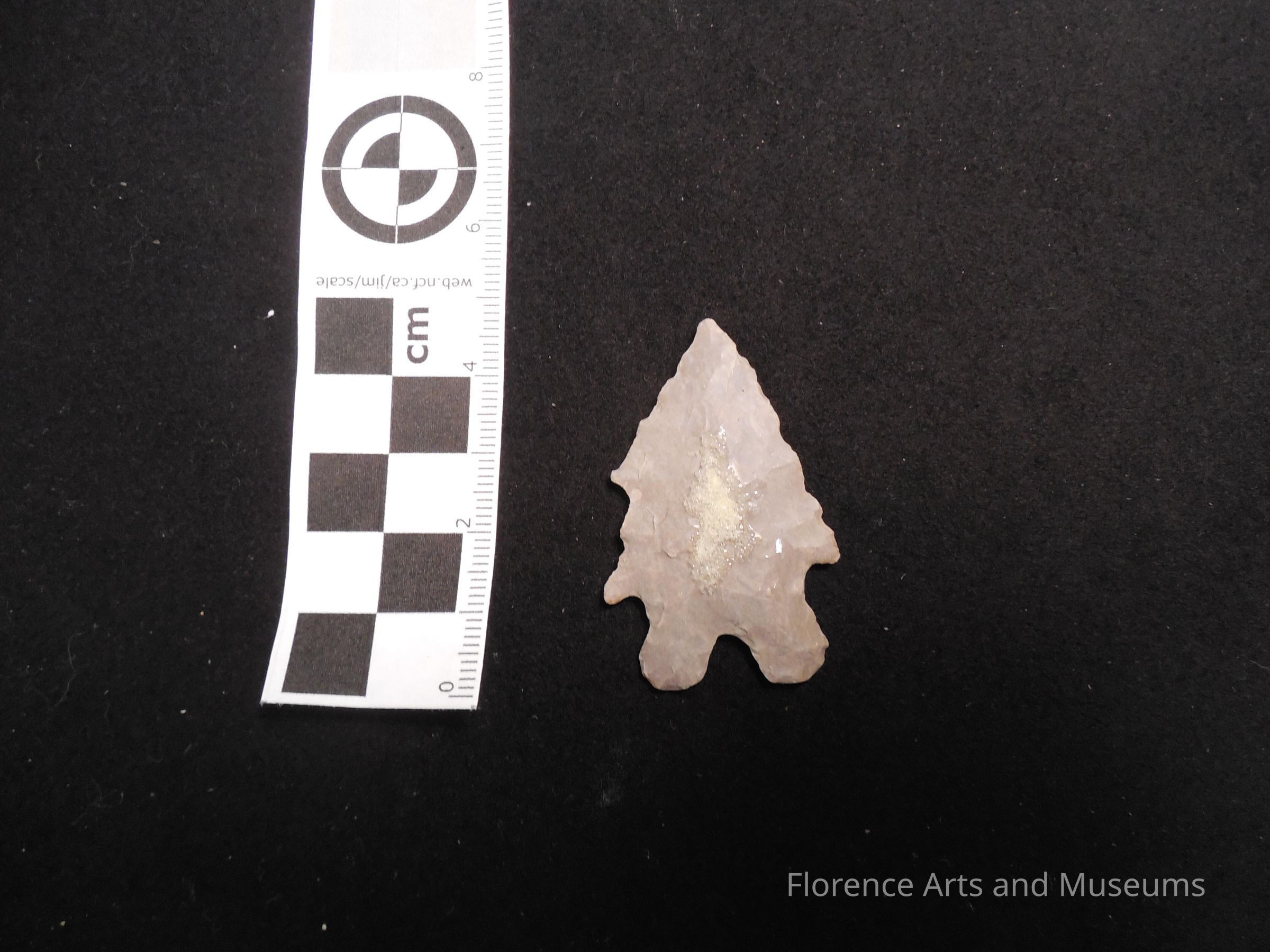 The LeCroy point type is a small, triangular dart point with a bifurcated base (forming two "ears") and a commonly serrated blade. The point is found in the northeast and midwest, extending down into the Tennessee River valley. It is named for the LeCroy site in Hamilton County, TN.Context