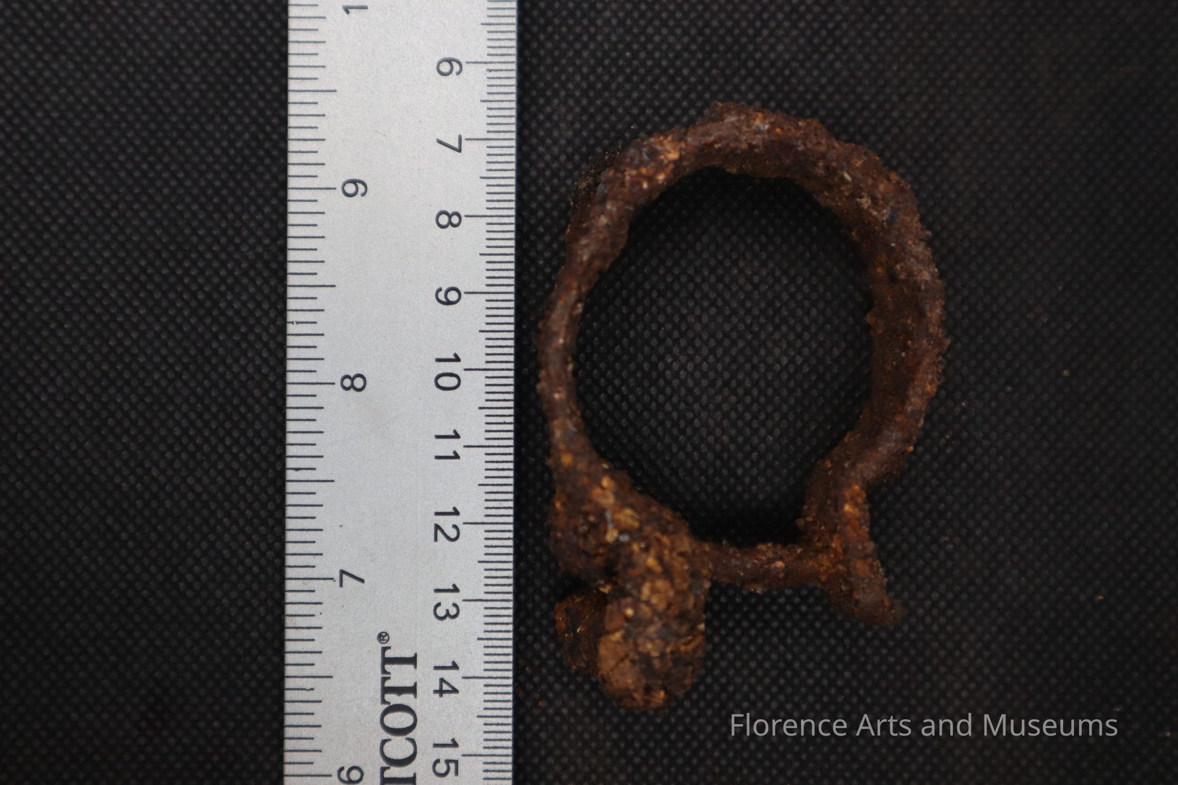 This metal clamp was excavated at Quadrant 1 of the cistern on March 10th, 2024, at Pope's Tavern.