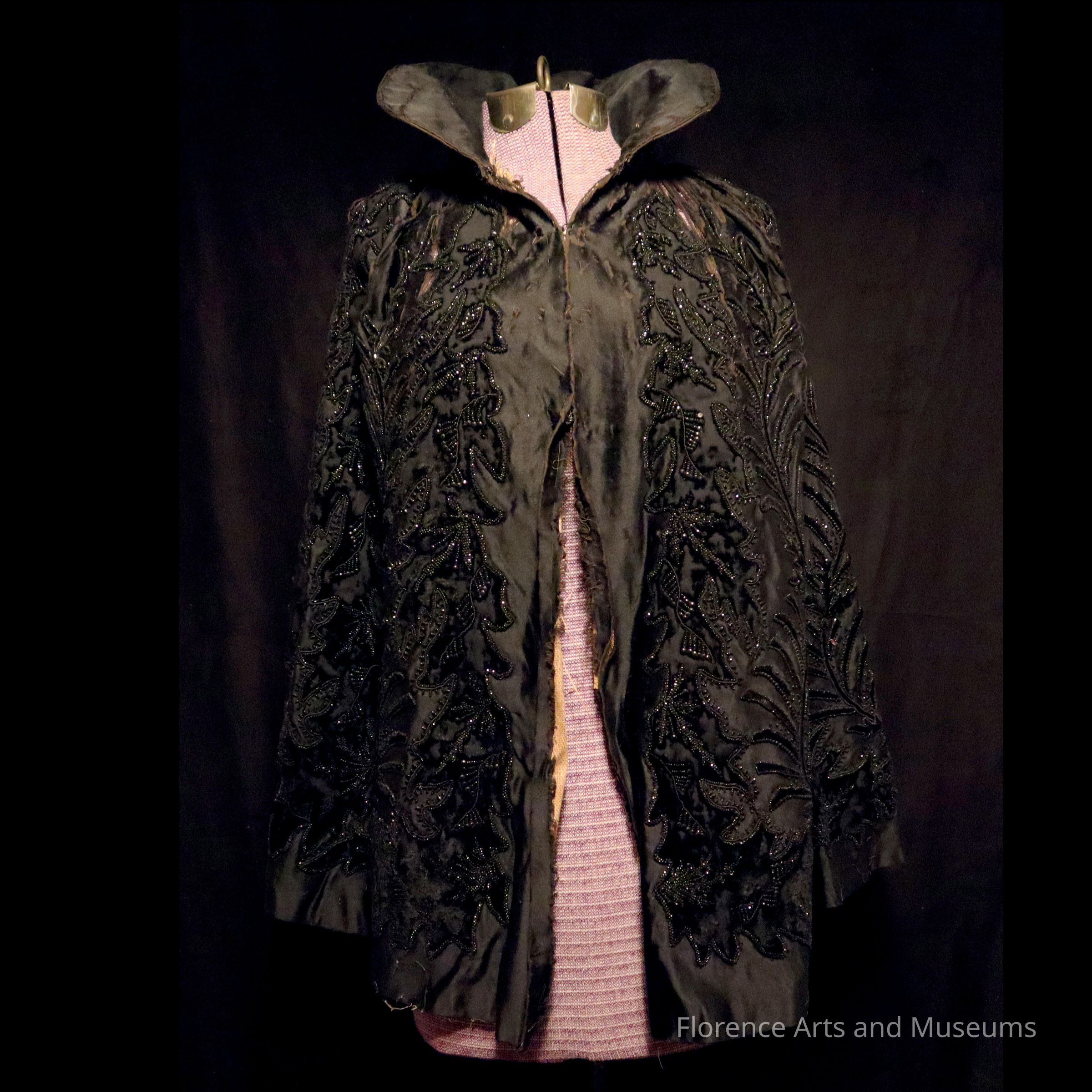 Woman's High Collar, Beaded Mourning Black CapeContext