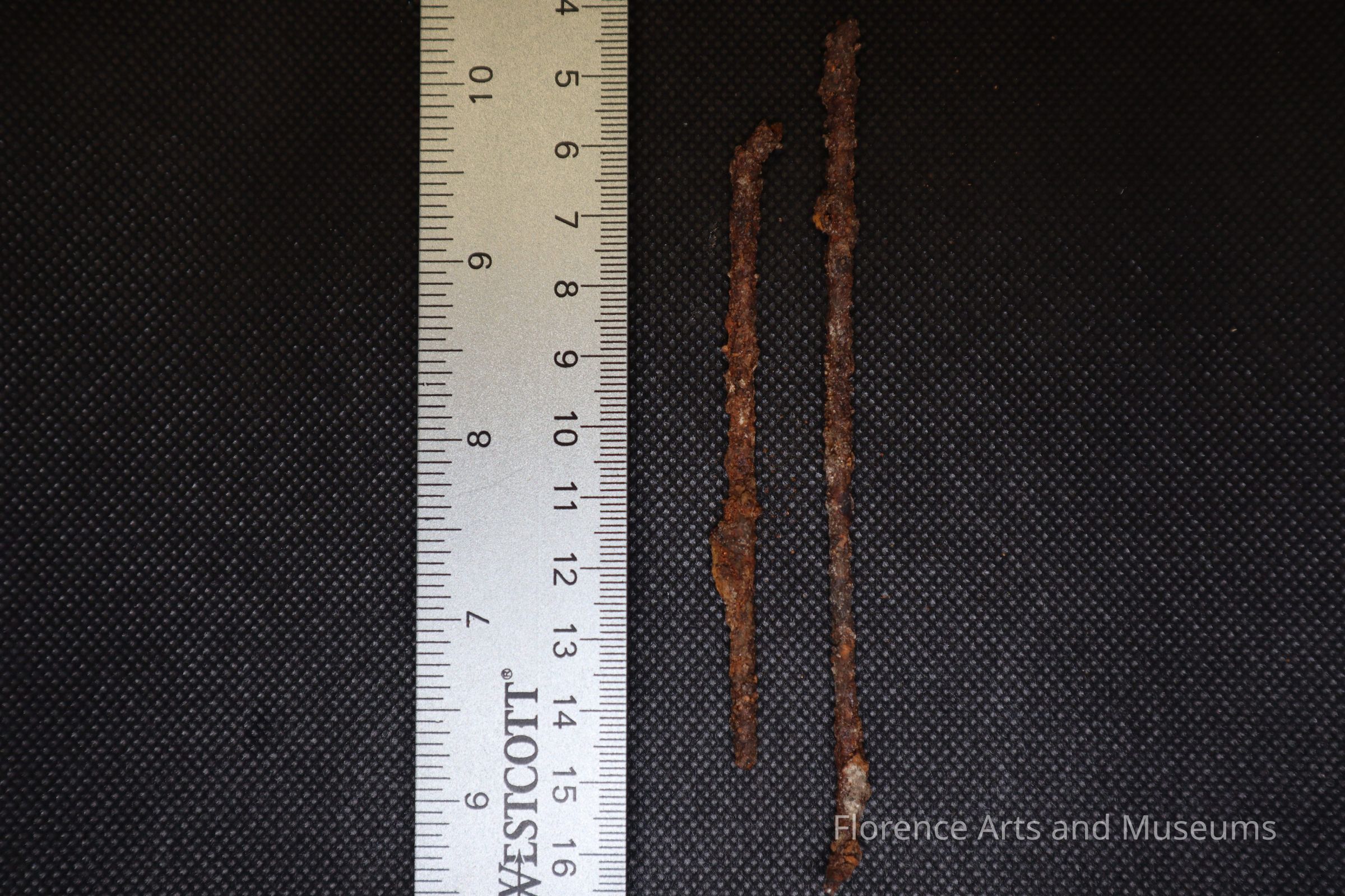 These metal bars were excavated at the cistern on December 16th, 2023, at Pope's Tavern.