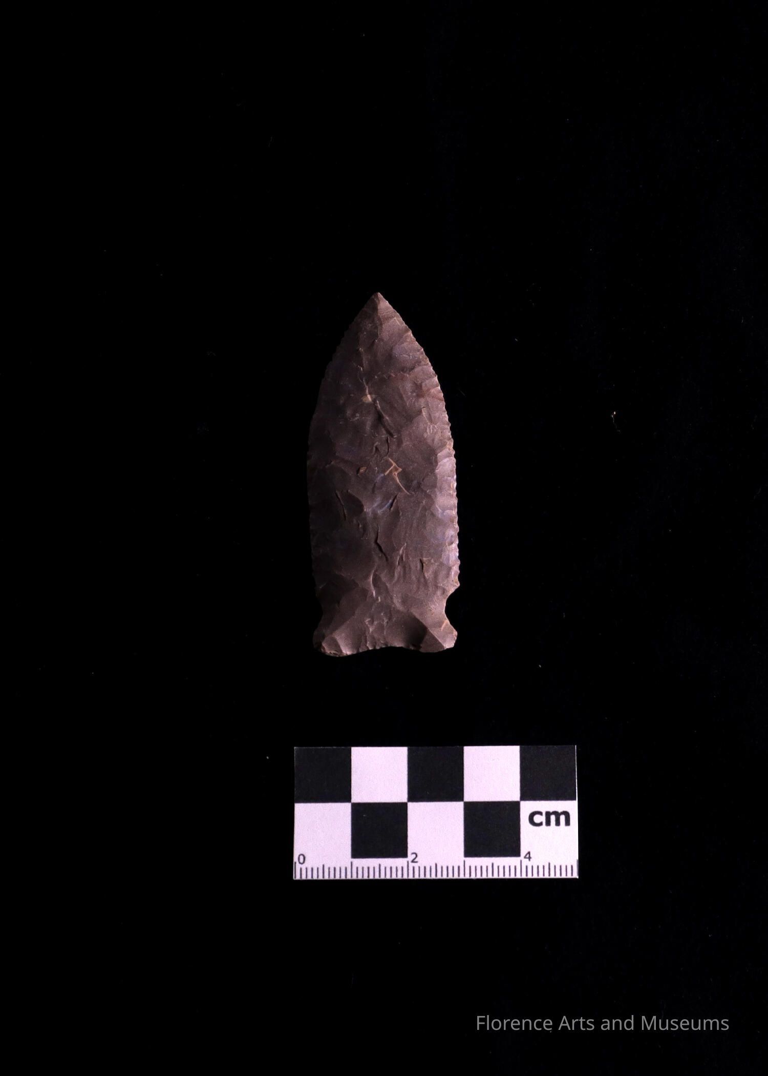 The Benton point is a medium to large size point with a straight to excurvate blade. It is typically made with fine, parallel flaking. This point type has a steeply beveled base. It is named for a site in Benton County, TN.Context