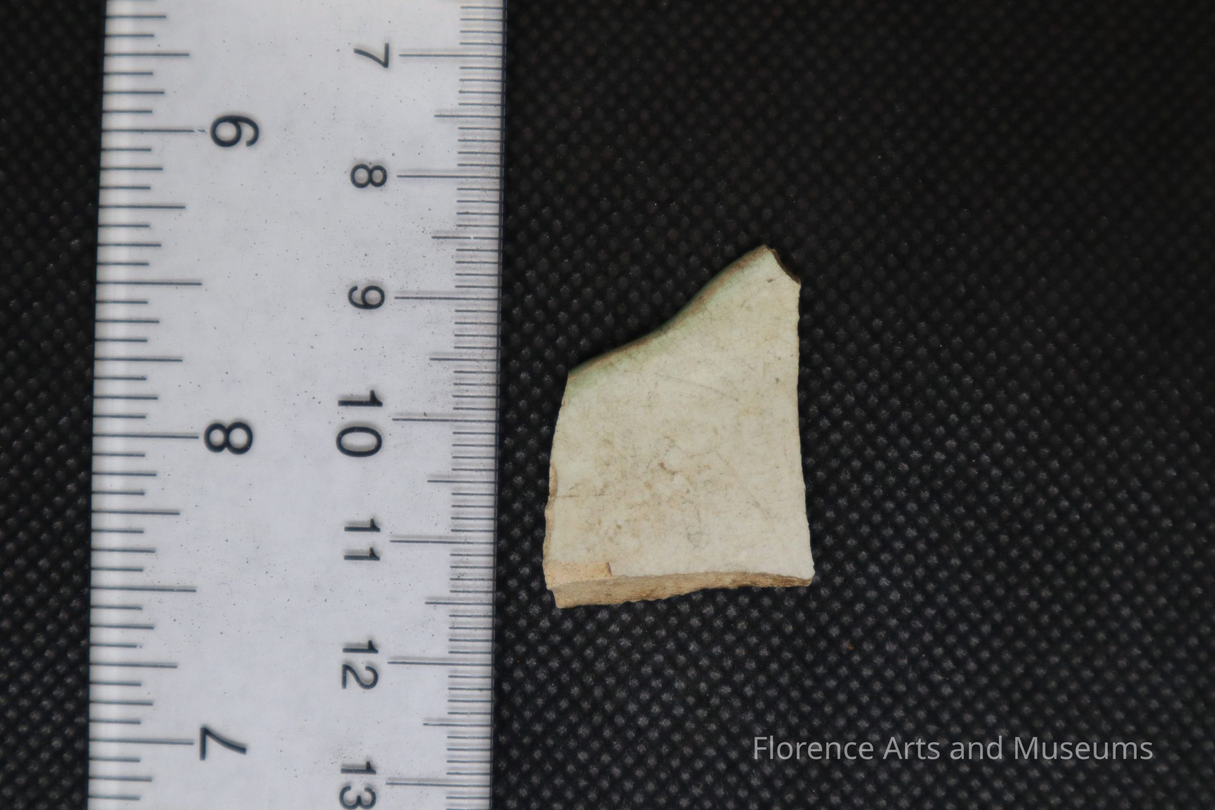Whiteware fragment with a green edge.Entry/Object ID