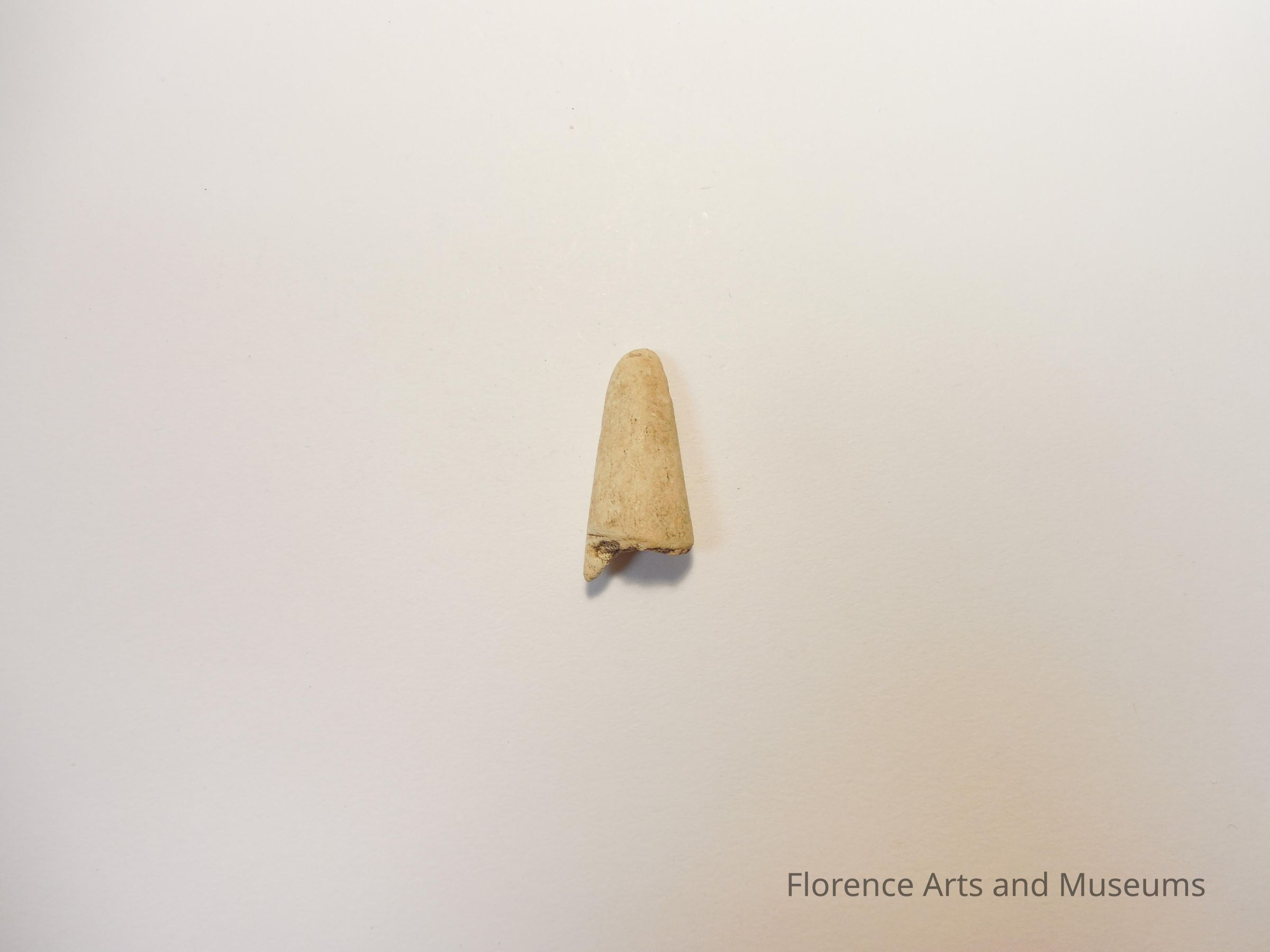 Made from an antler, this point is hollow on one end to fit over a wooden spear or dart shaft.