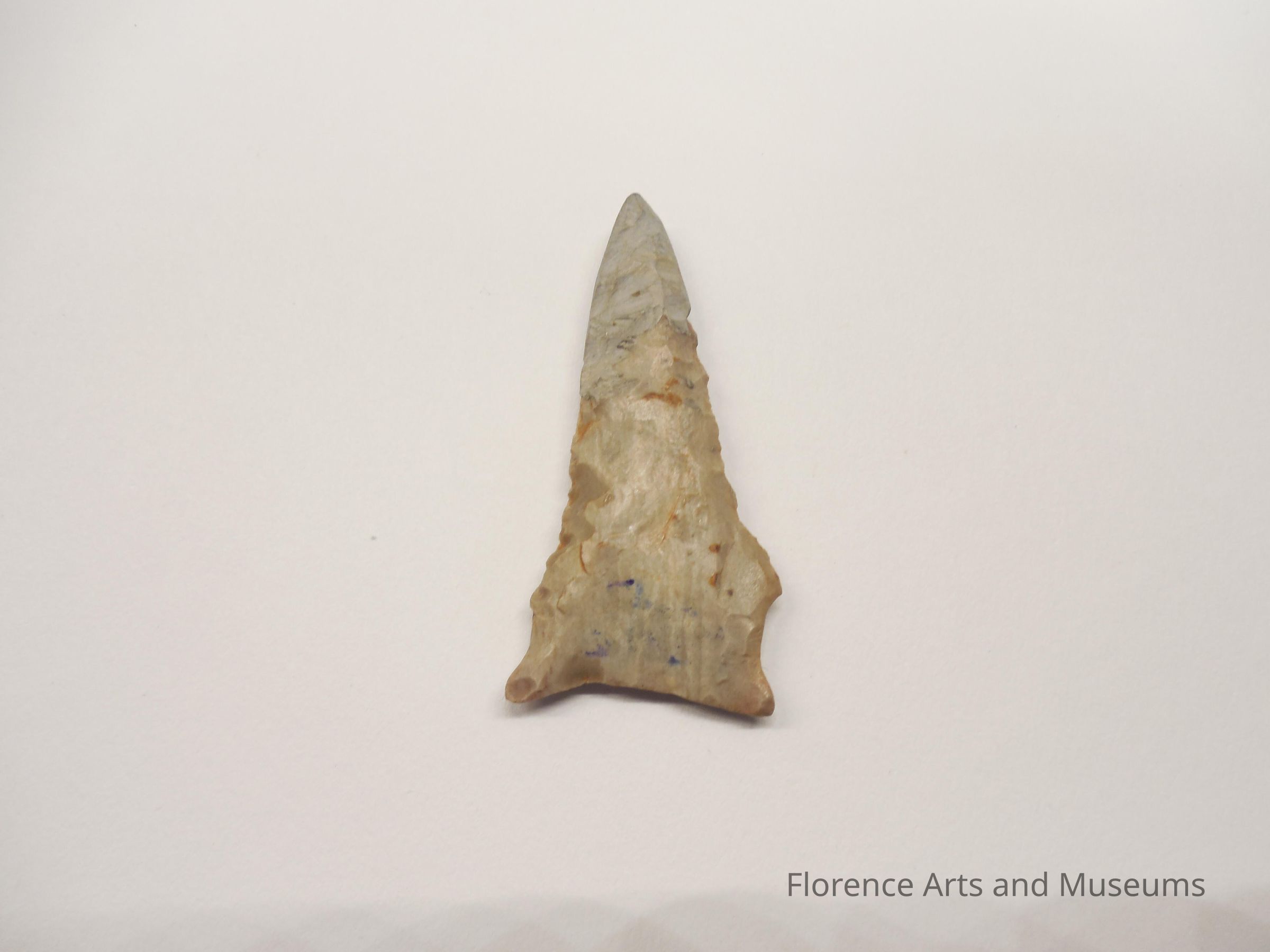 The Dalton point is a medium to large, triangular point that normally features a serrated blade. The base is concave. The Dalton point is named for Judge S.P. Dalton of Jefferson City, MO. This point appears to have been re-sharpened.Context
