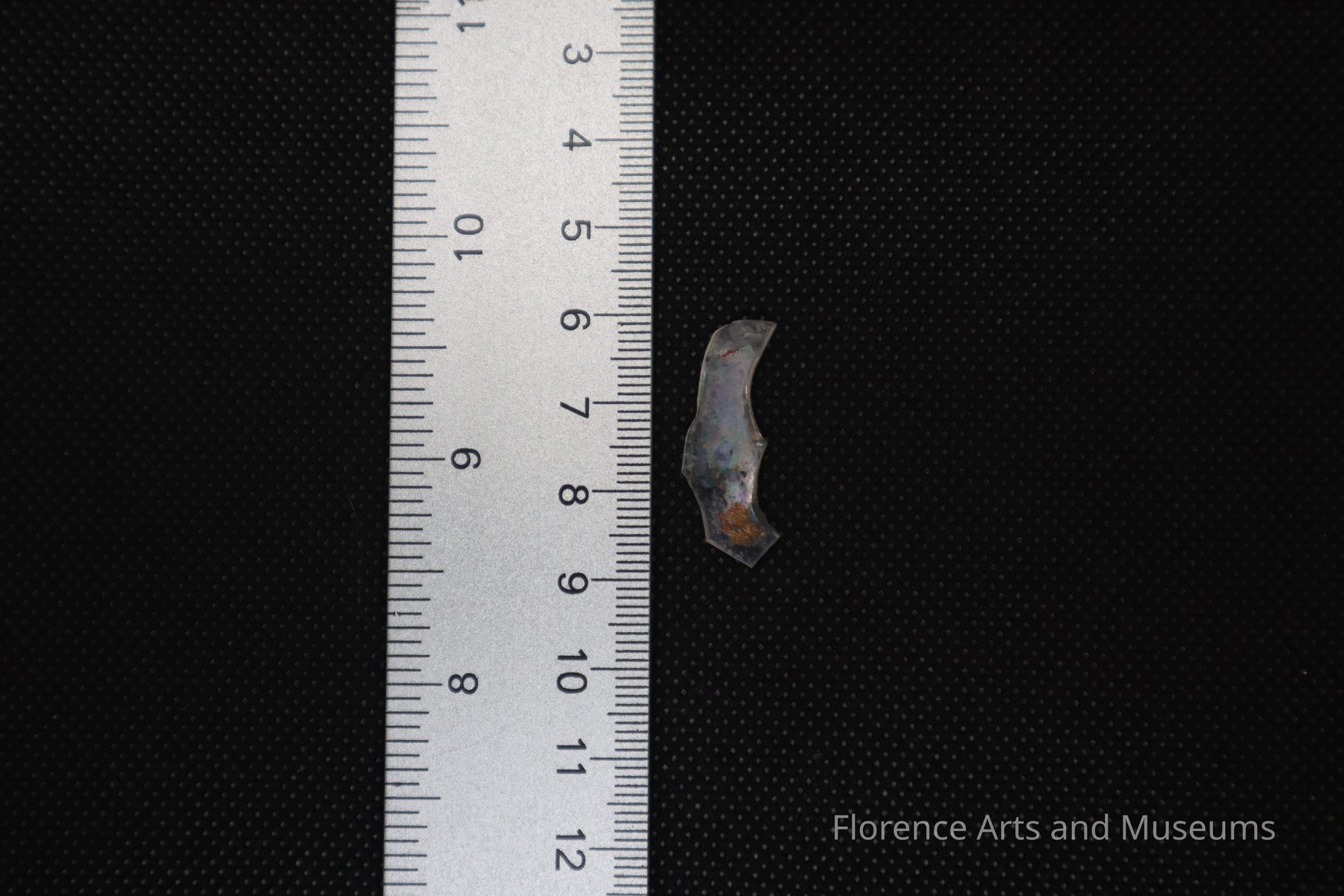 Opalescent container glass fragment