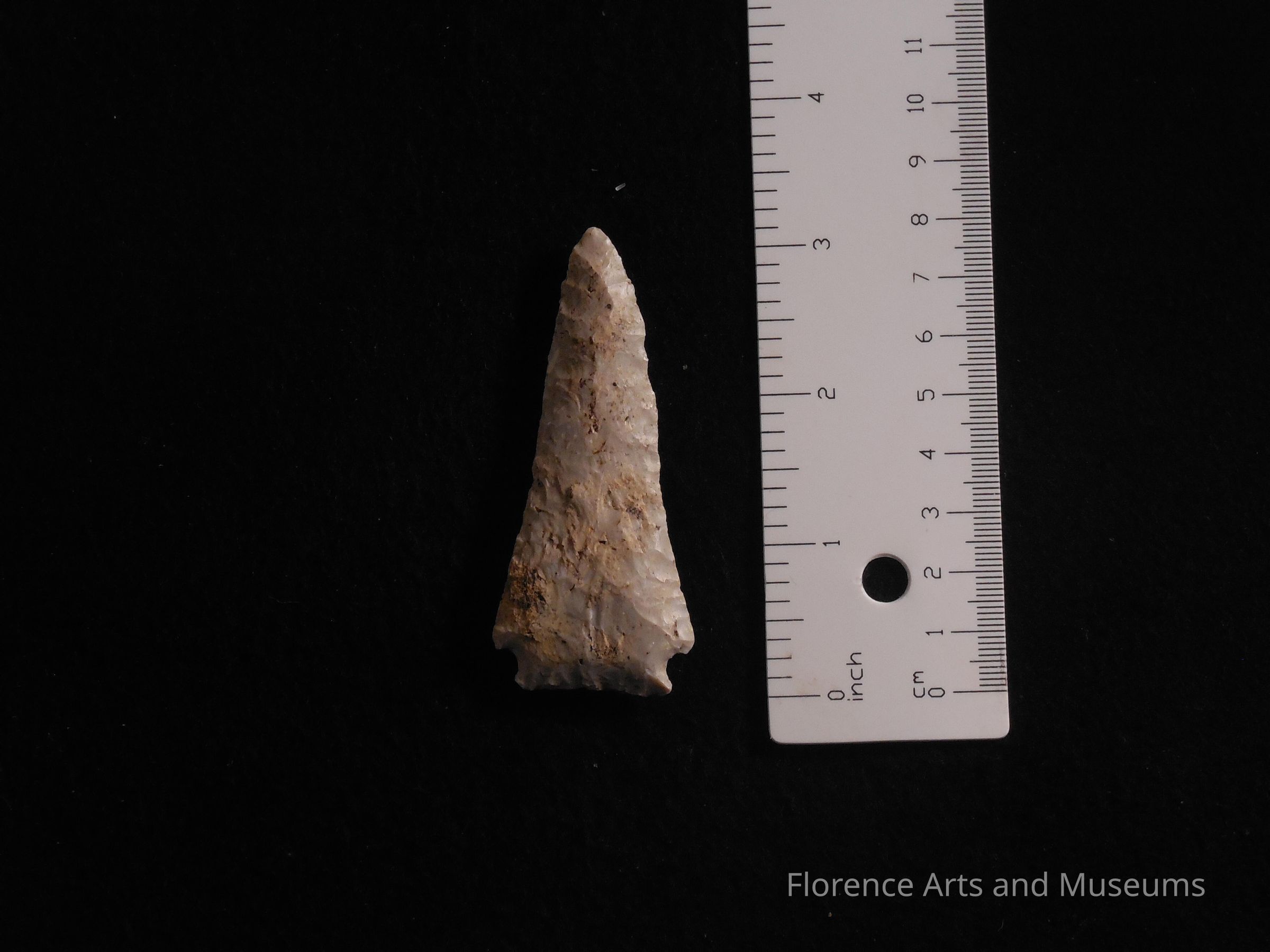The Greenbrier point type is typically a medium to large point with shallow side notches and a straight to concave base. Many examples are finely serrated. It was fairly common point type, found throughout the southeast. It is named for the Greenbrier area of Kentucky Lake in Tennessee.Context