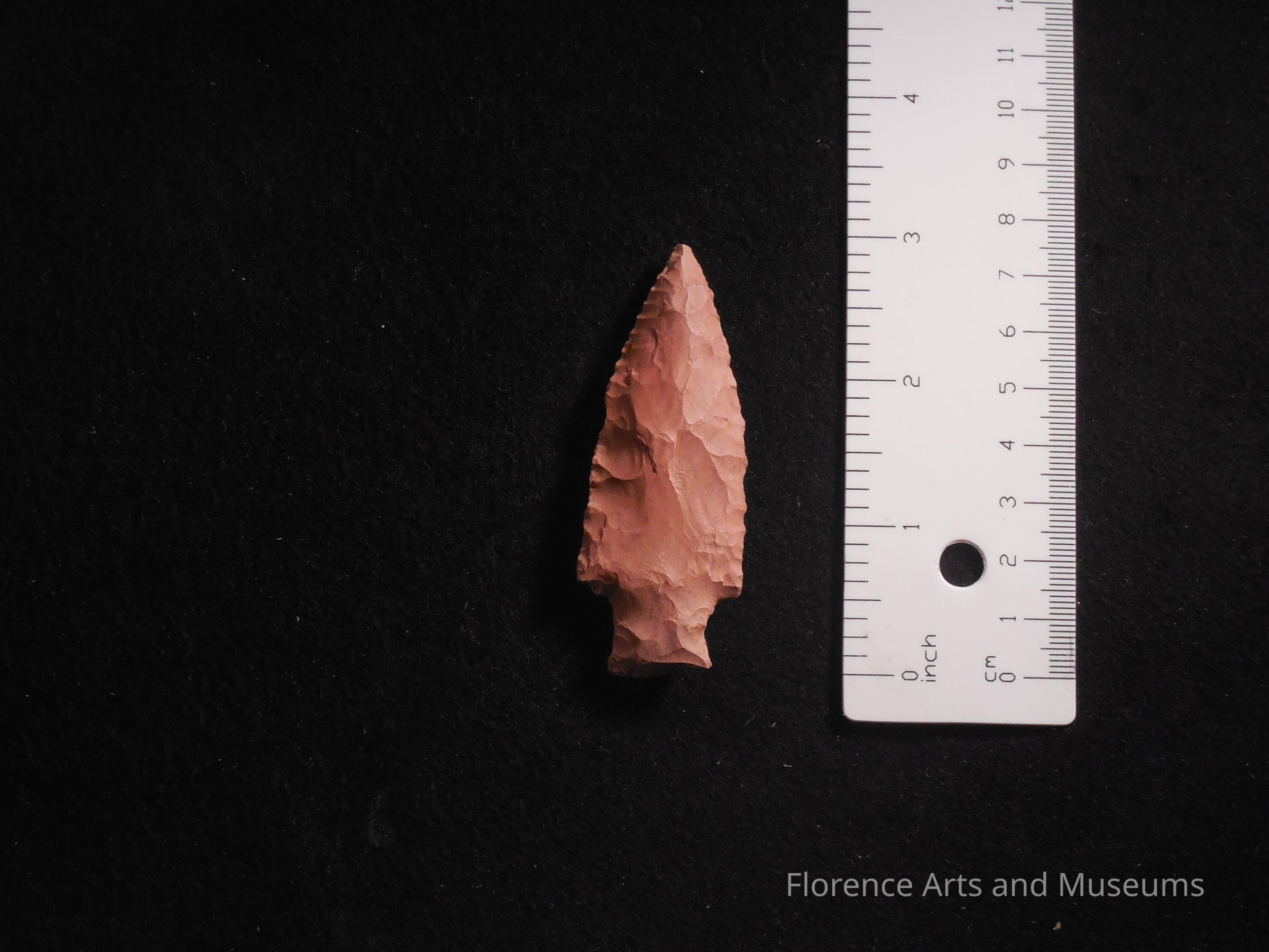 The McIntire point is triangular in shape with an expanding stem and a typically straight base. The shoulders may angle upward or be slightly barbed. Often, it has a asymmetrical shape. This point is named for McIntire Ditch in Limestone County, AL.Context