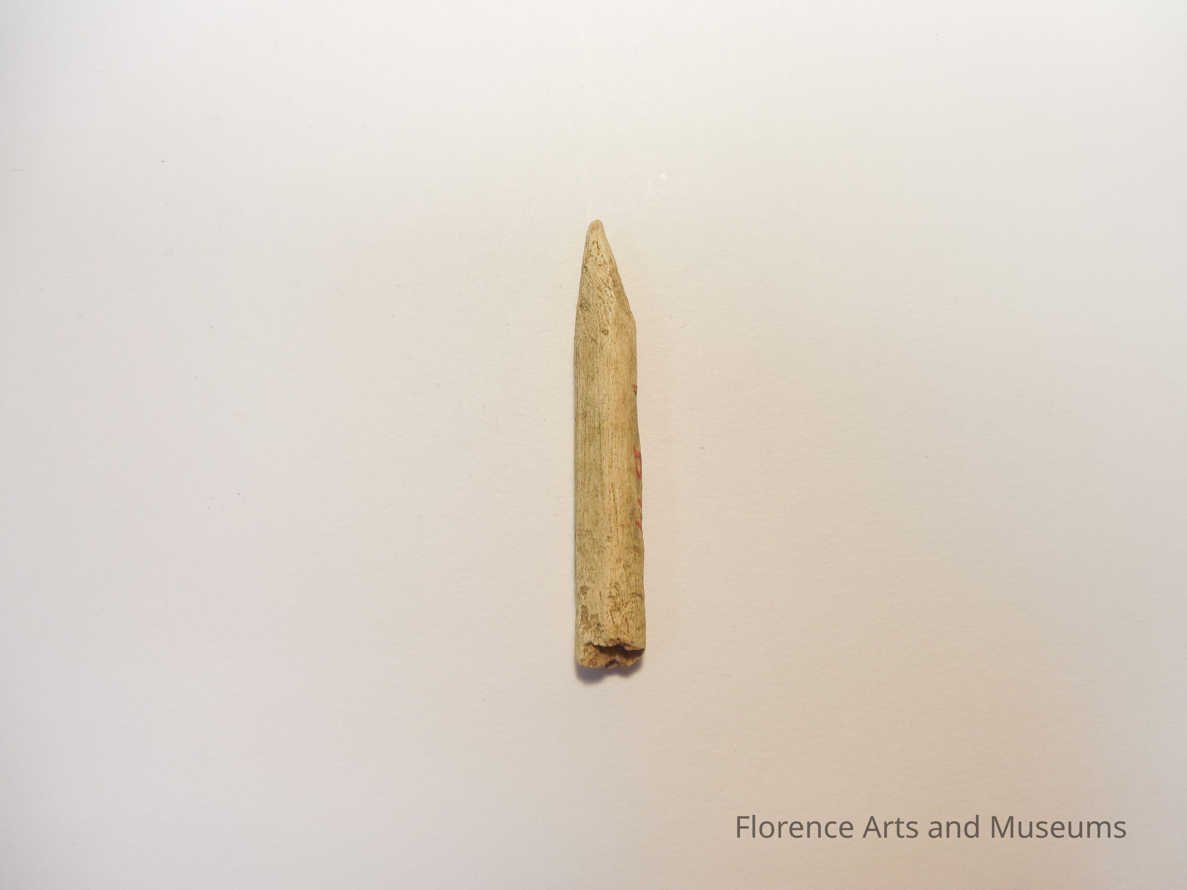 Made from the leg bone of a turkey, bone projectile points are hollow at one end to fit over the wooden shaft of a spear or dart.