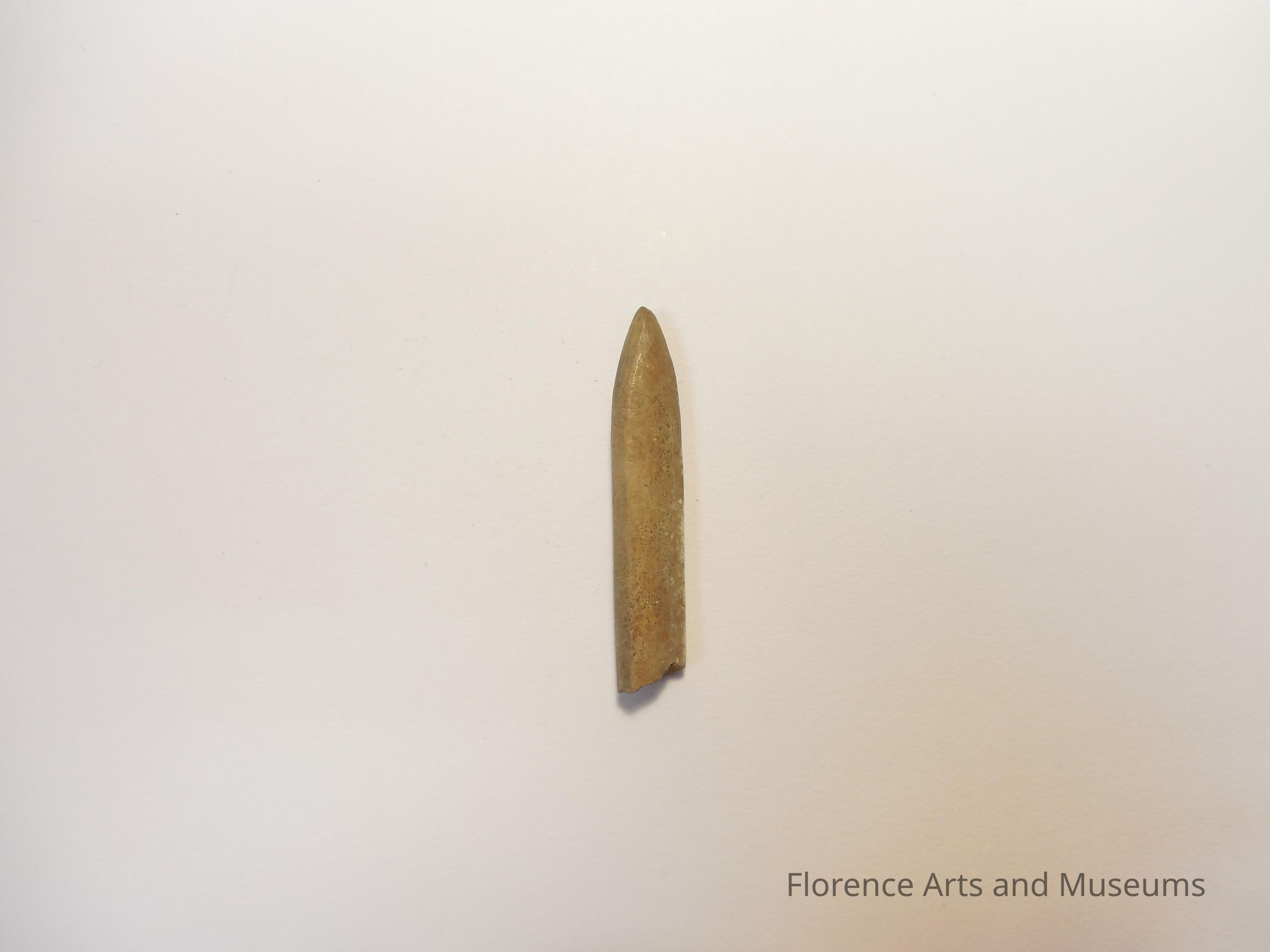Made from the leg bone of a turkey, bone projectile points are hollow at one end to fit over the wooden shaft of a spear or dart.
