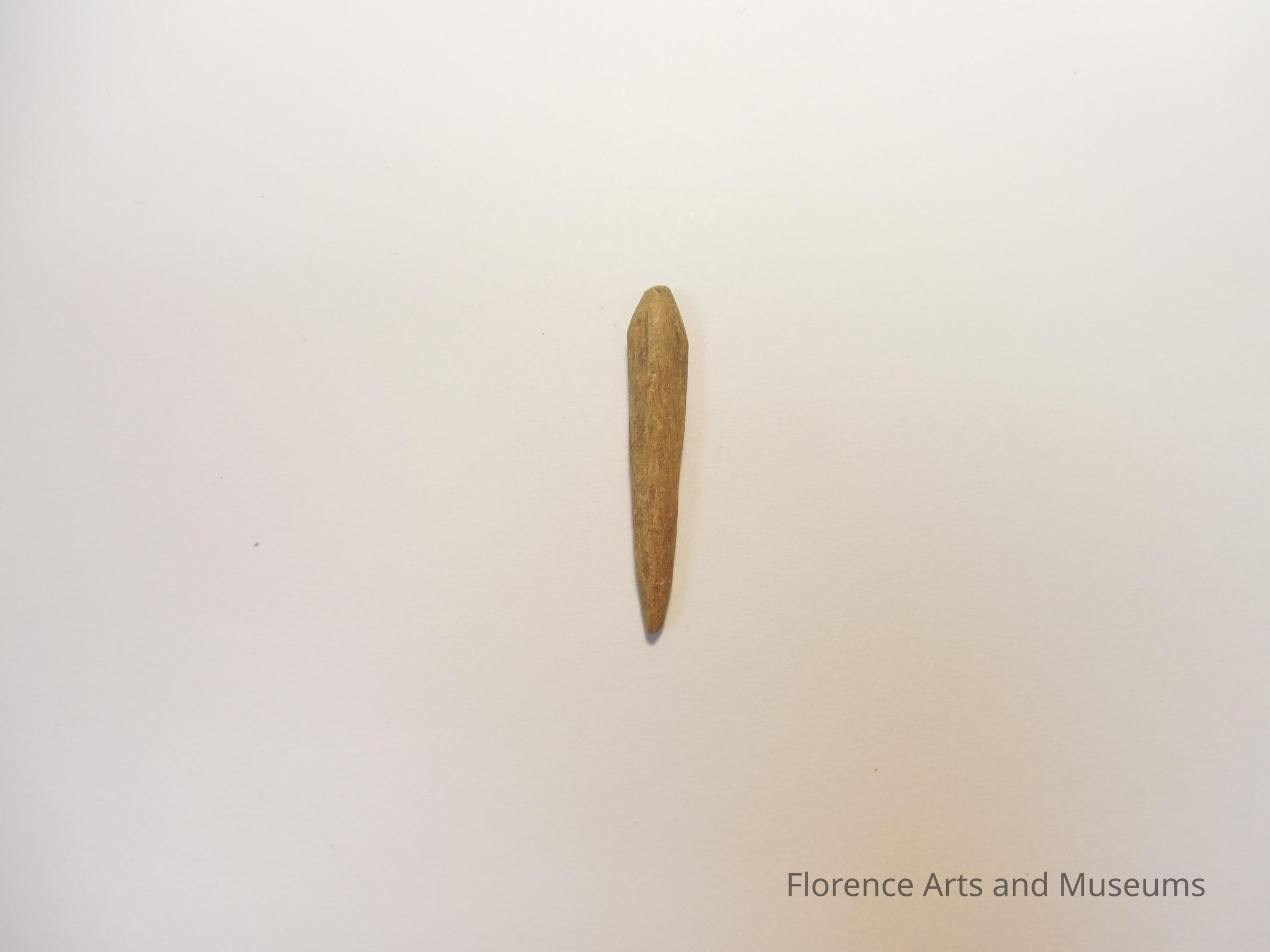 Made from the small bones of a deer, cylindrical awls were sharpened to a point at one end while the other end is typically a bone joint.