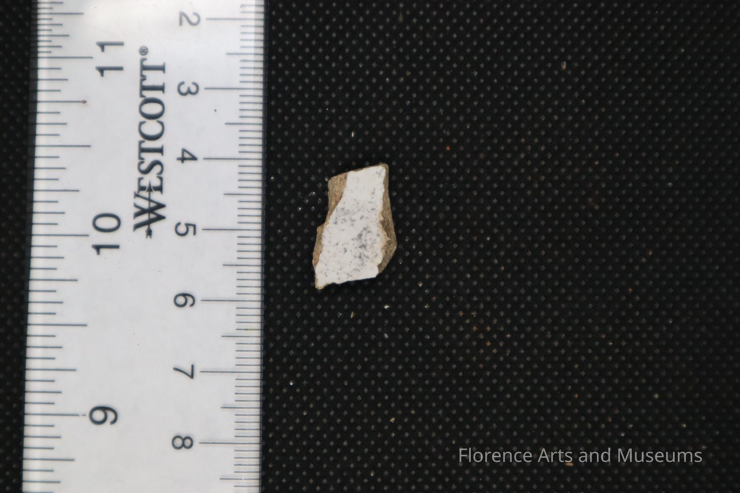 Grey-spotted ceramic whiteware fragment.