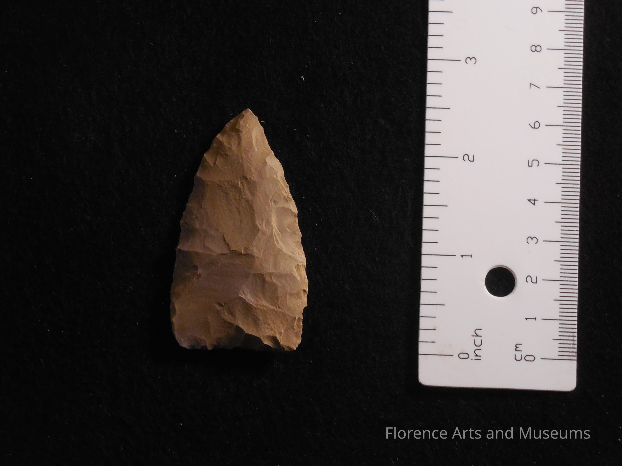 The Paint Rock Valley is a broad, medium to large triangular point with a concave base. The hafting area varies from straight to contrasting. The Paint Rock Valley point was named for the Paint Rock Valley Site in Jackson County, AL.Context