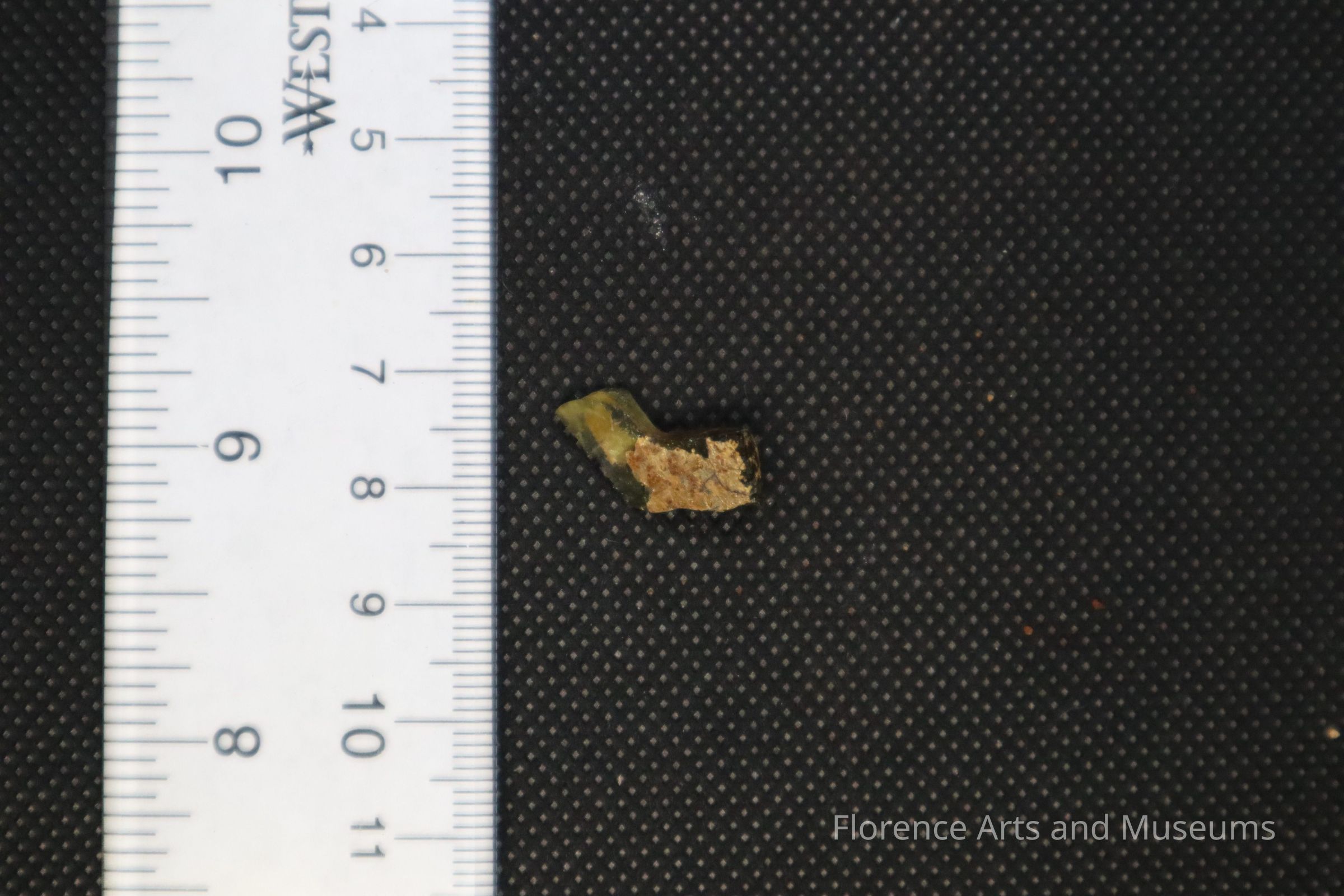 This glass fragment was excavated from Feature 2 of Test Unit 4 on August 11th, 2024, at Pope's Tavern.Colors