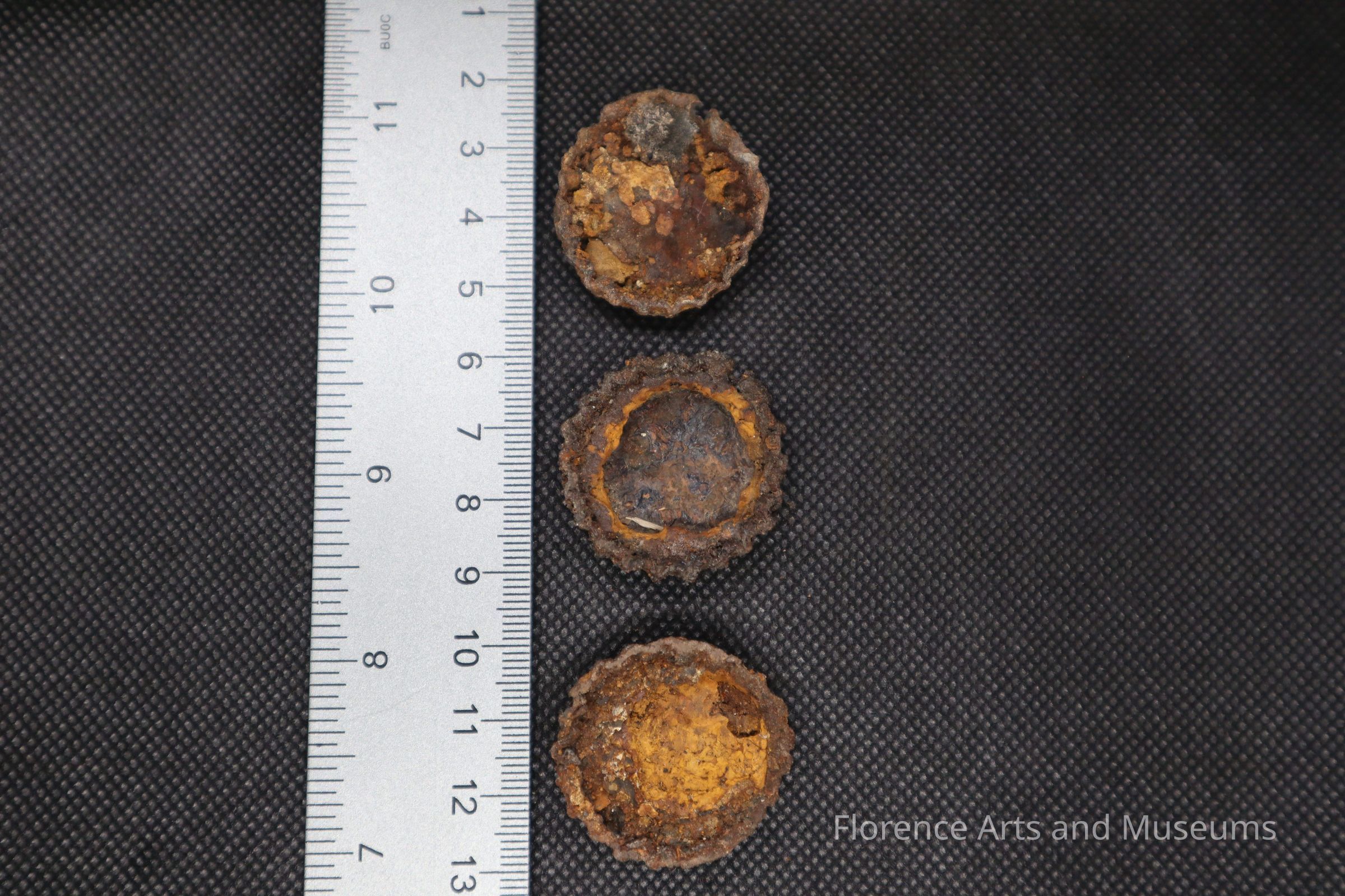 These metal bottle caps were excavated at Quadrant 1 of the cistern on March 10th, 2024, at Pope's Tavern.