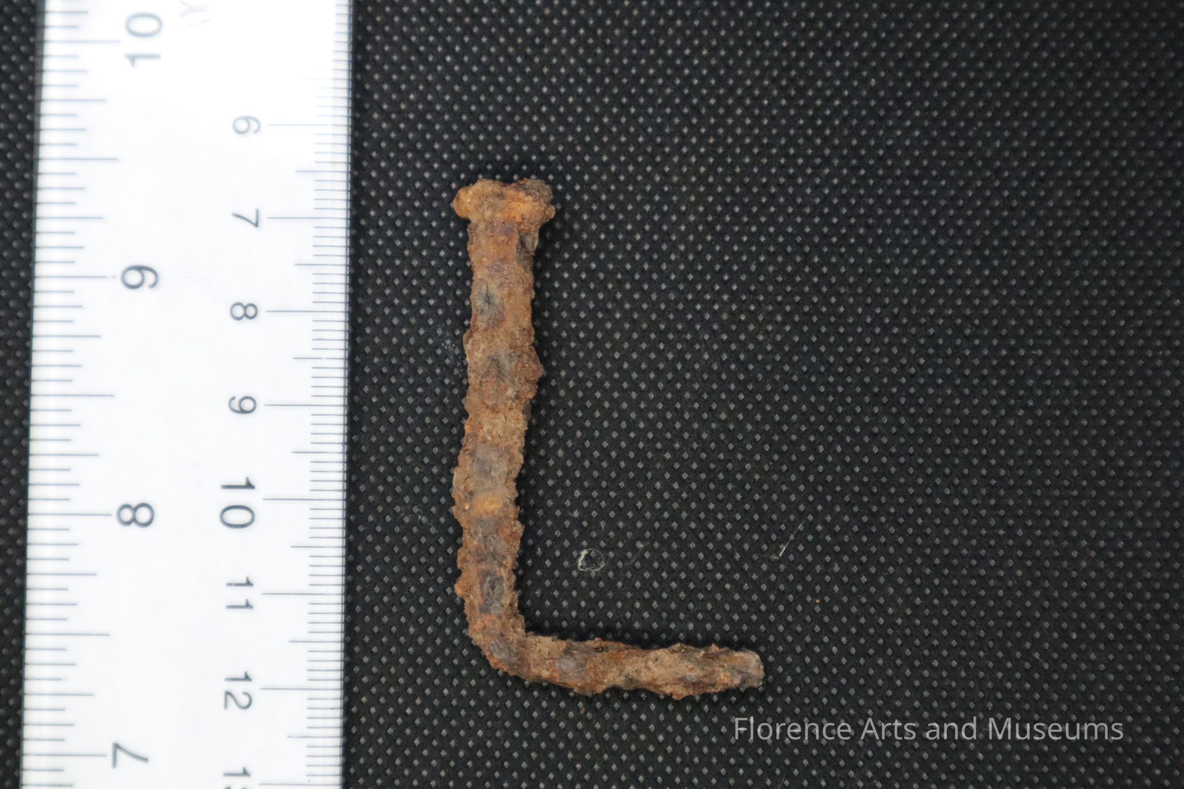 This metal cut nail was excavated from Level 3 of Test Unit 4 on August 28th, 2024, at Pope's Tavern.