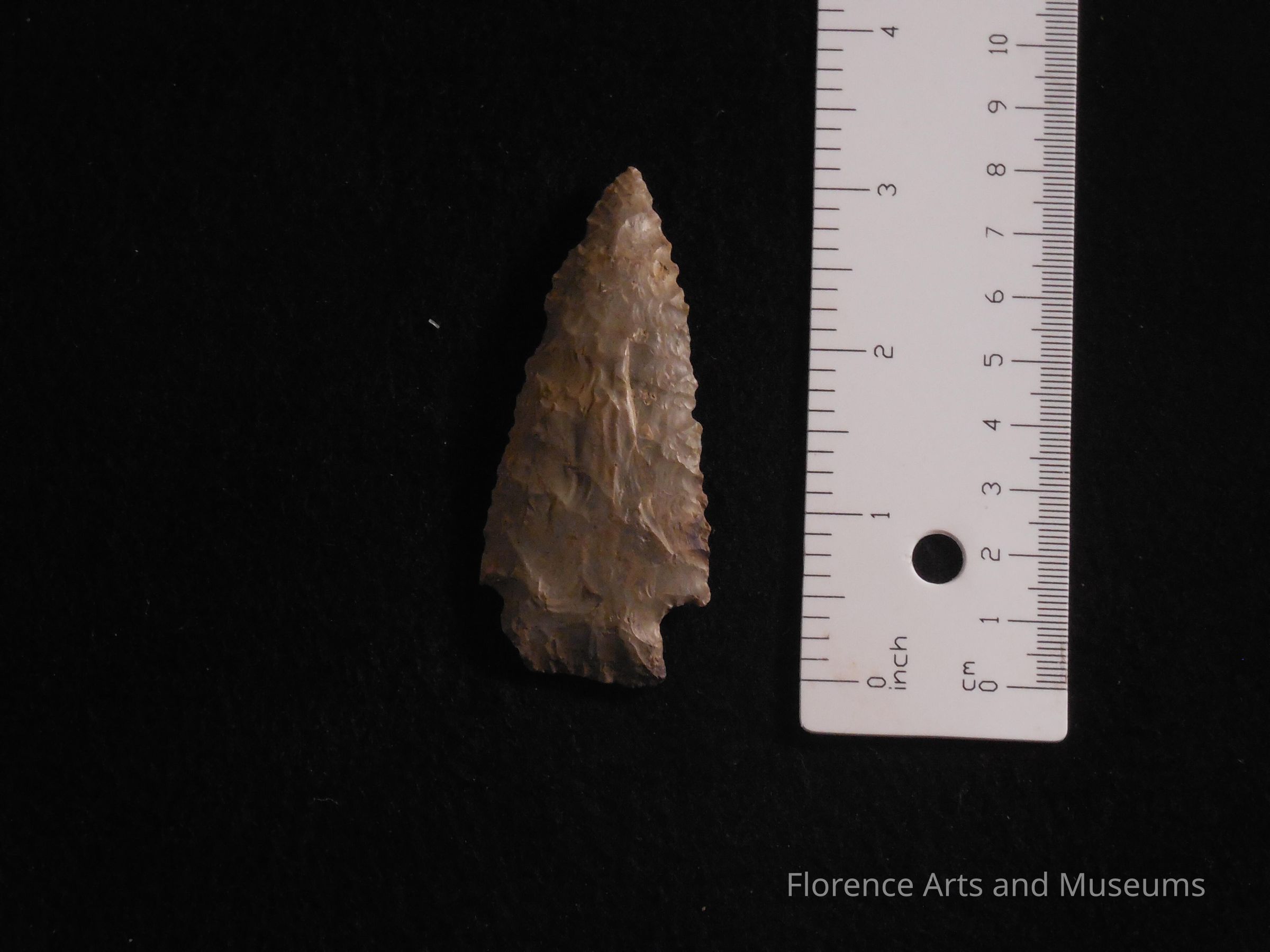 The Benton point is a medium to large size point with a straight to excurvate blade. It is typically made with fine, parallel flaking. This point type has a steeply beveled base. It is named for a site in Benton County, TN.Context
