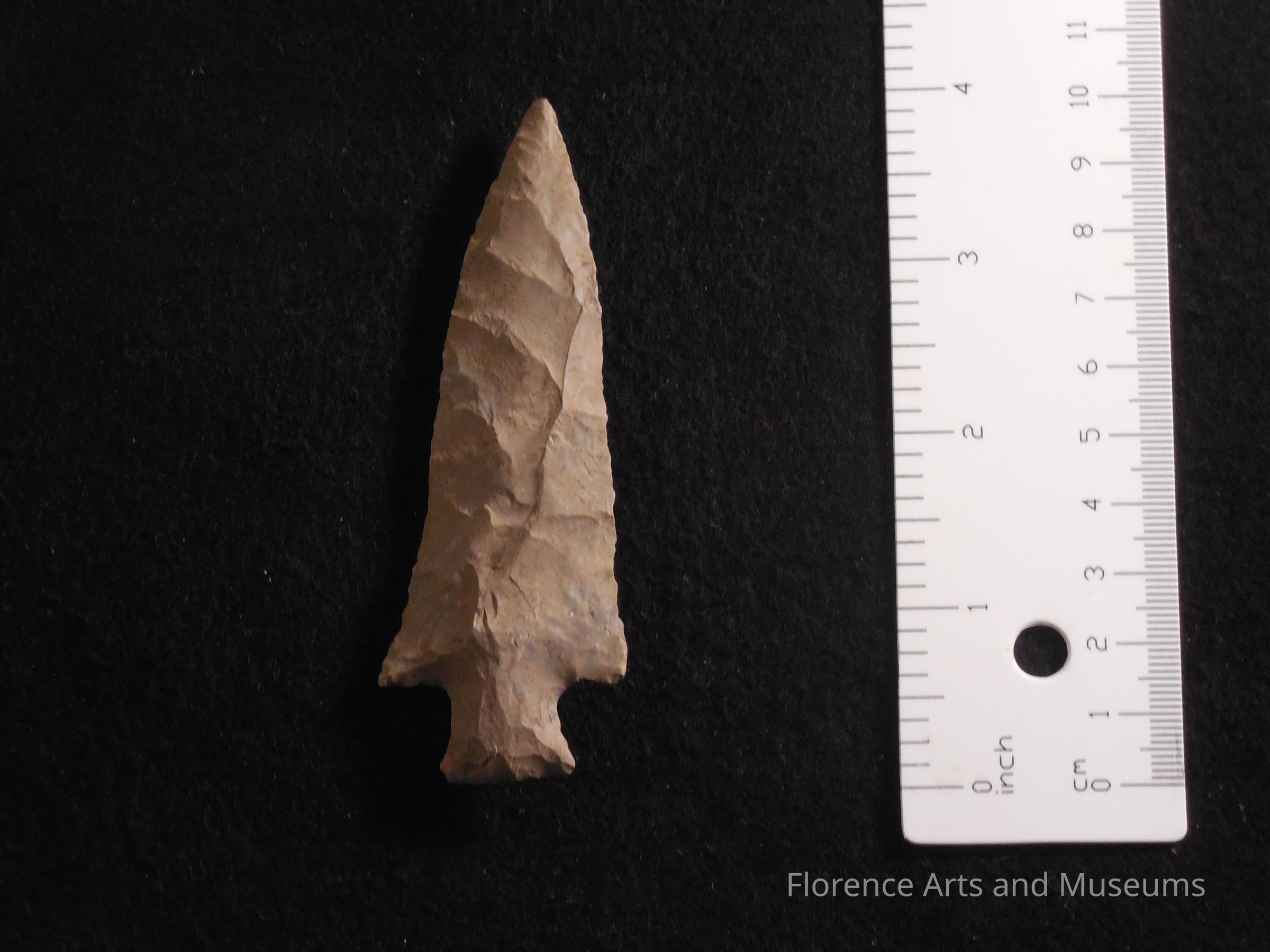 The Pickwick point is a medium to large sized projectile point with flared shoulders and a triangular shape. This example has a finely serrated blade. This point type was named for the Pickwick Basin of northwest Alabama where it was first identified by David DeJarnette in 1962.Context