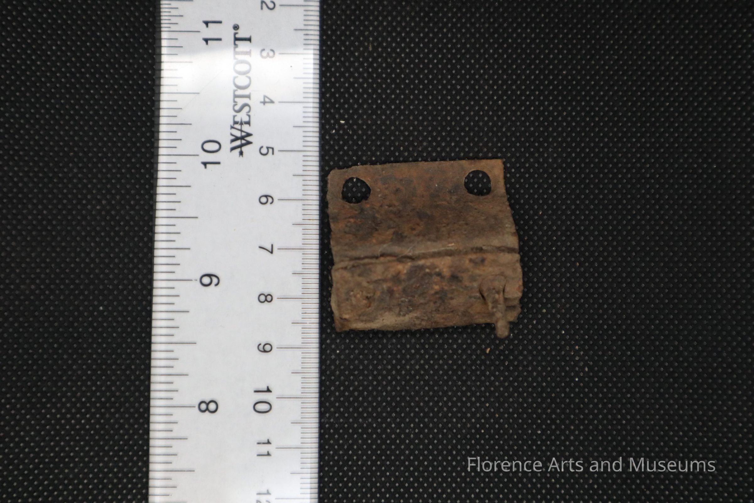 This metal hinge was a random surface find at an unknown location on June 11th, 2024, at Pope's Tavern.
