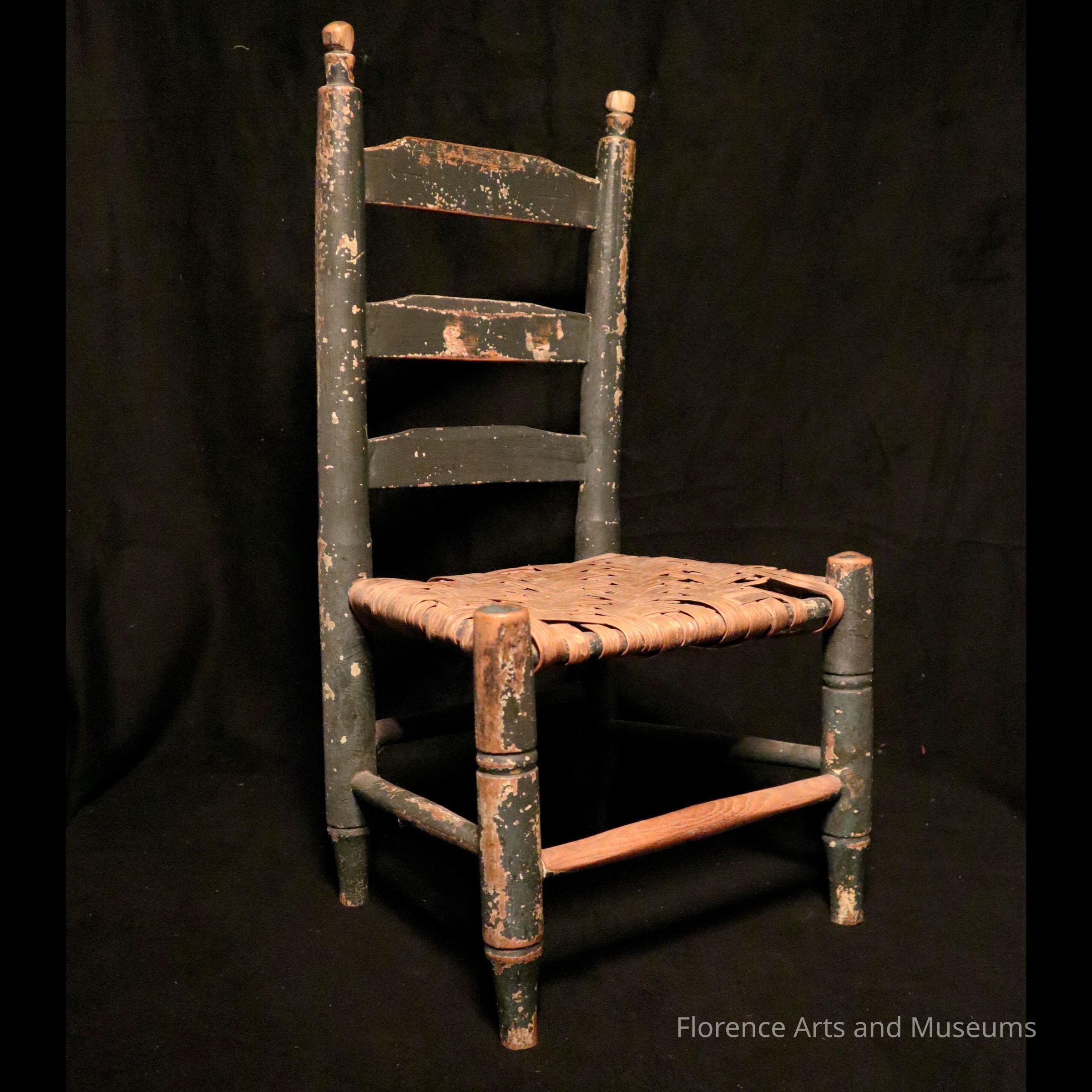 This chair belonged to the Maud Lindsay Free Kindergarten, a free school for low income white families in Florence, AL that opened in 1898.