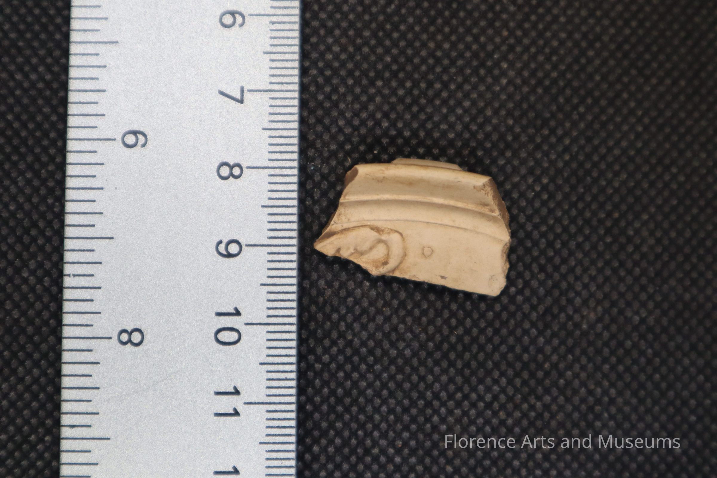 This fragment was excavated at the dirt sifting level on the cistern on October 22nd, 2023, at Pope's Tavern.