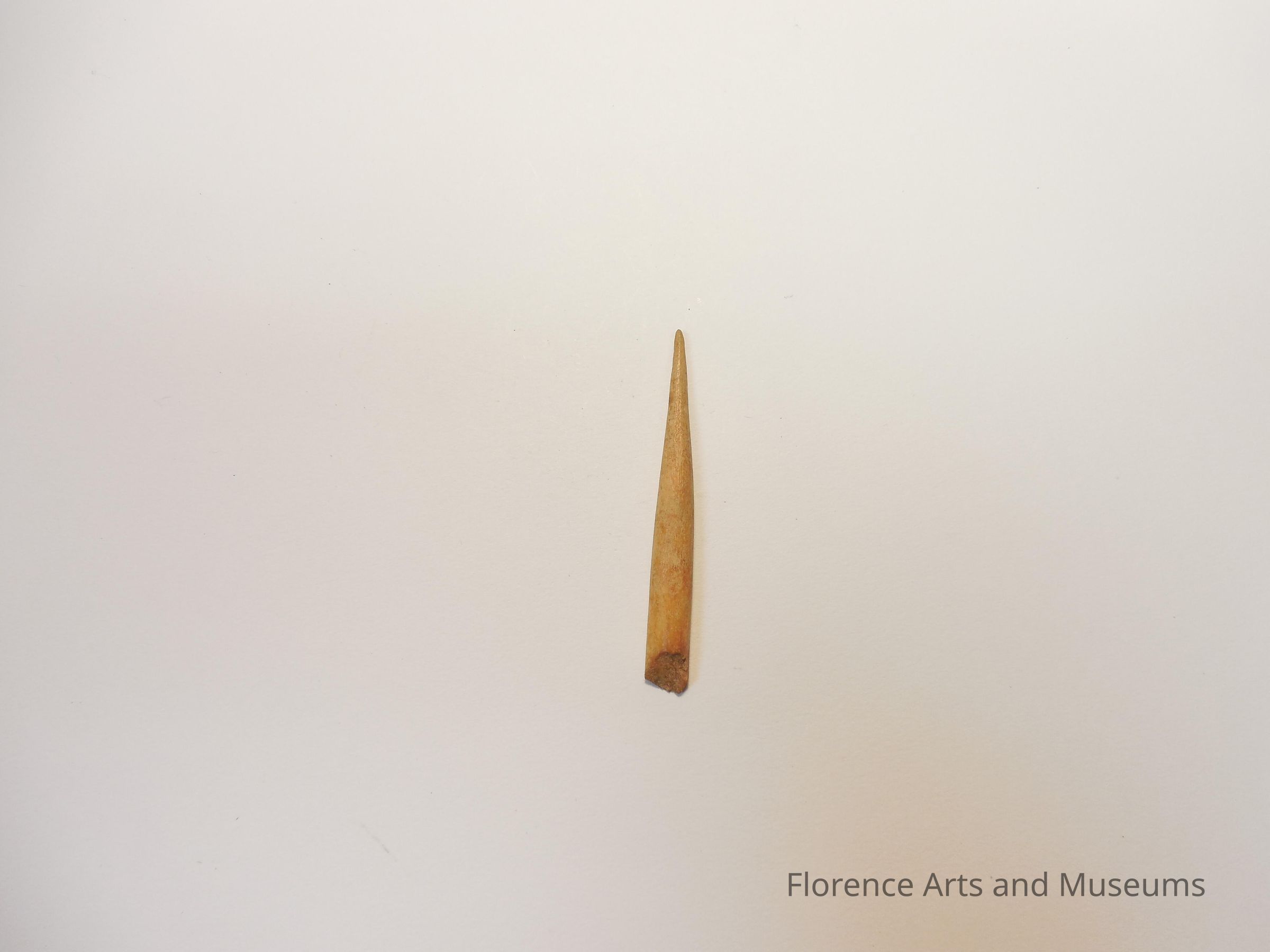 Made from the small bones of a deer, cylindrical awls were sharpened to a point at one end while the other end is typically a bone joint.