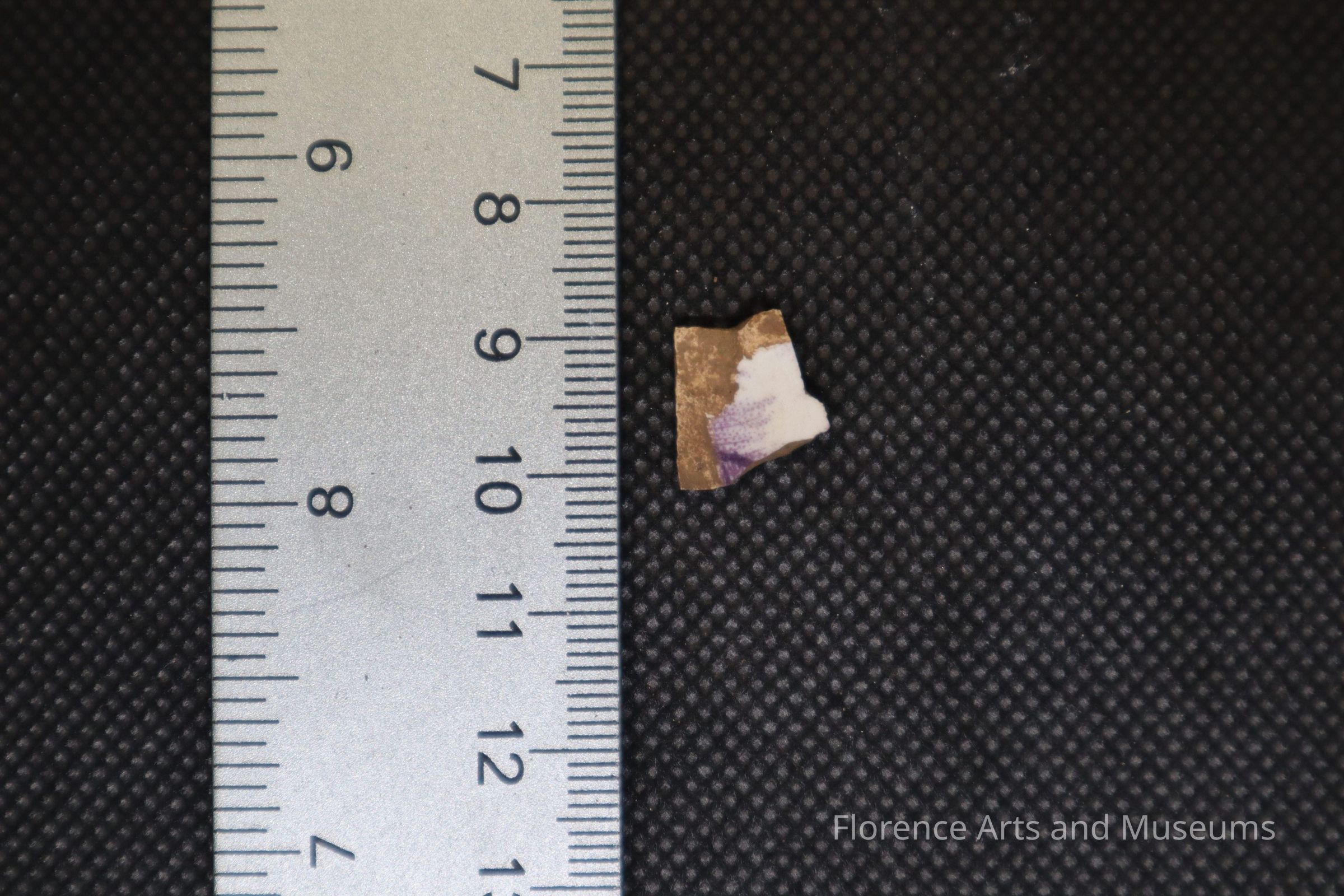 A small purple transferware fragment/sherd.