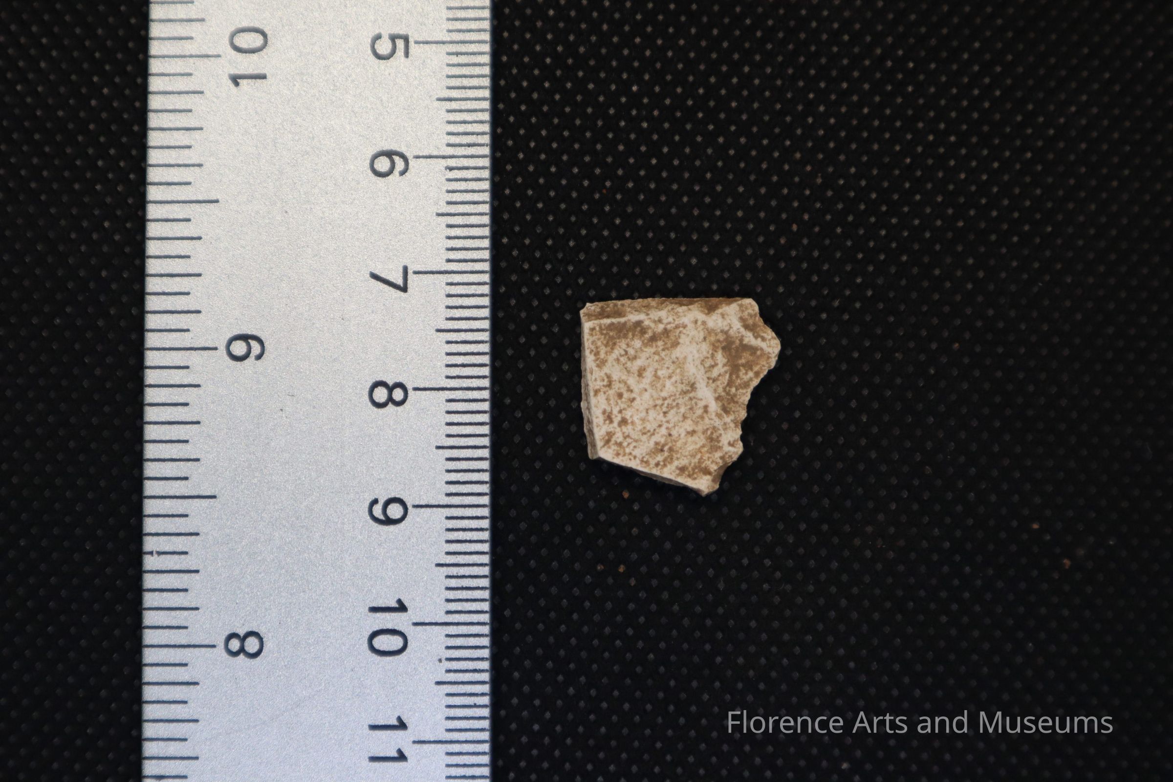 This fragment was excavated at Test Unit 4, Level 1 on September 27th, 2023, at Pope's Tavern.
