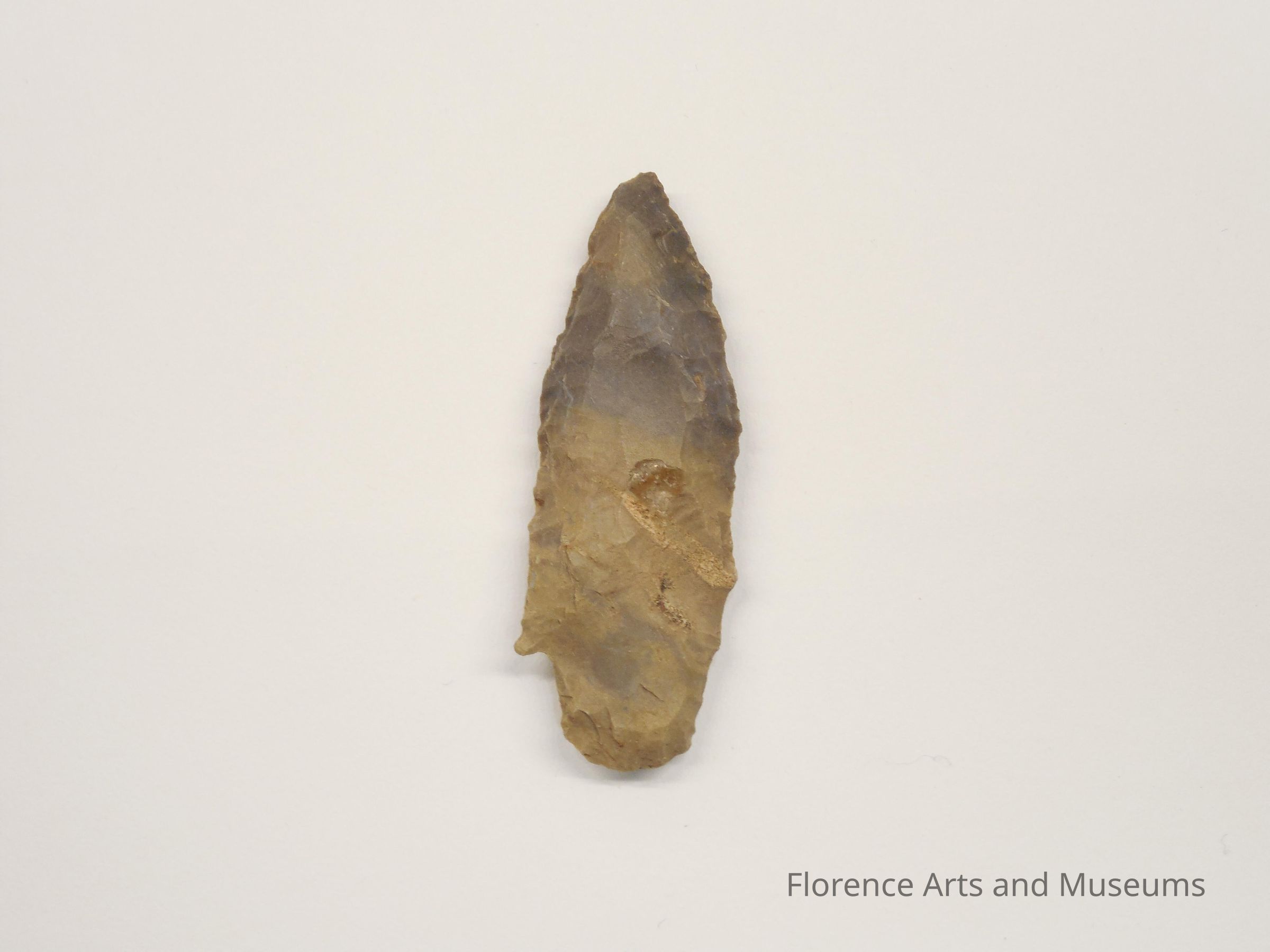 Asymmetrical stone point with concave base. The type is named for Sandia Cave, New Mexico, where it was first identified.Context